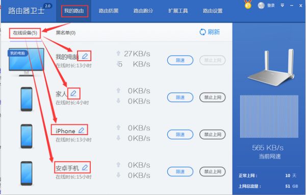 | 路由器怎么设置 路由器全部怎么安装 路由器怎么设置 路由器亮红灯哪种故障 路由器登录入口和光猫的区别 路由器怎么重启 路由器怎么连接 路由器桥接教程详细 路由器干什么用:如何查看路由器上连接了多少设备如何用手机查看路由器连接了几台设备如何查wifi有几个手机连接 一、如何查看路由器上连接了多少设备 1、首先打开电脑,找到路由器卫士的官网,路由器卫士是一款可以帮助我们优化路由器使用体验的软件,关于路由器的各项功能都很完善。 2、找到官网之后,进行下载操作,查看路由器连接几台设备,所以下载电脑版,点击官网上的电脑版下载即可进行路由器卫士软件的下载了,如果是手机来查看的话,就点击手机端下载进行下载此软件,下载好之后点击安装即可。 3、下载好路由器卫士此软件之后,在桌面上找到此图标,双击此图标,打开此软件,一般新下载的软件都位于电脑屏幕的最后一顺位,打开此软件之后准备进行下一步操作。 4、打开之后,界面就是连接路由器的设备,这样,即可查看路由器连接几台设备了。 5、查看连接几台设备之后,就可以限制别人一起共享网络了,点击管理,即可管理连接路由器的设备,这会优化我们的网络体验,不会像限制别的设备之前那样出现卡顿的情况。 更多关于怎么查看路由器上连接了多少设备,进入:https://www.abcgonglue.com/ask/2993771615522758.html?zd查看更多内容 二、如何用手机查看路由器连接了几台设备 无线路由器网速突然变慢变卡,有可能是WiFi密码被人破解了。 这时候我们需要查看一下无线路由器上连接的电脑台数,就可以判断出到底有没有被蹭网。 1、手机连接无线网络,登陆路由器管理界面。 2、输入用户名和密码, 一般路由器都是:用户名:admin 密码:admin。 3、选择路由设置点击,先填写宽带帐号,再填写原先就设置好的WIFI名称和密码。 4、设置好了宽带帐号和WIFI后,点击“我的路由”就可以看到有那些设备连接了路由器了,你还可以对自己家的设备进行标注,也可以禁止那些不是自己家的连网设备上网。 解决办法是: 无线加密方式选择WPA2-PSK,或者是WPA-PSK/WPA2-PSK。 设置一个复杂一点的WiFi密码,用字母、数字、下划线的组合,位数大于8位。 一般来说,完成以上2个步骤后,就可以抵御绝大多数的蹭网软件、无线蹭网卡了。 如果你还是不放心自己的无线WiFi安全,那么建议你使用下面的。 设置“无线MAC地址过滤”。 这里的无线设备加上用网线连接的设备,才是这台无线路由器上一共连接了多少台设备。 有线的自己数一下你路由器上一共插了几根网线就知道了。拓展资料: 路由器(Router,又称路径器)是一种计算机网络设备,它能将数据通过打包一个个网络传送至目的地(选择数据的传输路径),这个过程称为路由。 路由器就是连接两个以上各别网络的设备,路由工作在OSI模型的第三层——即网络层。 路由器(Router),是连接因特网中各局域网、广域网的设备,它会根据信道的情况自动选择和设定路由,以最佳路径,按前后顺序发送信号。 路由器是互联网络的枢纽,"交通警察"。 目前路由器已经广泛应用于各行各业,各种不同档次的产品已成为实现各种骨干网内部连接、骨干网间互联和骨干网与互联网互联互通业务的主力军。 路由和交换机之间的主要区别就是交换机发生在OSI参考模型第二层(数据链路层),而路由发生在第三层,即网络层。 这一区别决定了路由和交换机在移动信息的过程中需使用不同的控制信息,所以两者实现各自功能的方式是不同的。 三、如何查wifi有几个手机连接 不少用户都担心自己家的wifi被别人蹭网了,但是又不能确定wifi到底有没有被蹭网。 其实,要确定自己wifi是否被蹭网的方法很简单,只要登录到无线路由器的设置界面,查看wifi的连接人数,就可以知道了,是不是很方便。 用手机来查看自己家wifi连接人数时,手机一定要先连接到自己家的wifi信号,然后才能用这个手机登录到设置界面,查看wifi连接人数。 路由器的设置网址,又叫做:管理页面地址、登录地址、登录IP、管理地址等。 路由器的设置网址,可以在该路由器底部标贴中查看到。 打开手机中的浏览器,在浏览器中输入:设置网址,打开登录页面—>填写:管理员密码/登录密码,登录到路由器的设置页面。 在路由器的设置页面,一般有一个“设备管理”的选项,在这个选项中,可以看到目前连接路由器上网的所有设备。 |
