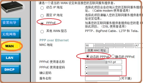 | 路由器怎么设置 路由器全部怎么安装 路由器怎么设置 路由器亮红灯哪种故障 路由器登录入口和光猫的区别 路由器怎么重启 路由器怎么连接 路由器桥接教程详细 路由器干什么用:无线路由器插上带密码的网线怎么使用需要密码才能登陆的网络怎么接路由器网线直连路由器怎么接 一、无线路由器插上带密码的网线怎么使用 给你解释一下路由器的工作原理你可能能够更明白 无线路由器有两个主要功能:1:就是可以根据你设置的账号密码连接到网络,并将下端多个设备的信号汇集后往因特网发送,或者根据路由表,将因特网发来的数据正确的发送到下段的设备! 2:无线嘛,就是可以发送无线信号,进行无线通信! 网线不会带密码!!!!!!!!那是你家开通宽带的账号和密码,就像你的网络银行账号和密码一样!要账号和密码才能正常交易! 你现在需要做的是把你的路由器重新设置一下,将路由器里的登陆账号和密码设置成你家开通的宽带账号密码! 二、需要密码才能登陆的网络怎么接路由器 需密码才能登陆,属PPPOE拨号方式,可利用网线连接路由器,进行设置。 1、用浏览器(或任一文件夹地址列)输入路由器网关地址,如192.168.1.1 (或有的品牌是192.168.0.1或其他)登入路由器设置页面。 图中用户及密码如不是admin,或设置过忘记,就需重置路由器回复出厂值。 (通电开启状态下,长按路由器背后的reset键5~6秒再松开) 2、《WAN》 点选宽带类型PPPoE 点选动态的PPPoE 填上宽带帐号密码 3、《LAN》 可将路由的IP设为192.168.2.1或其他 (建议避开192.168.1.1避免与猫的IP混淆或冲突) 日后登入设置路由器,就这个IP网关得牢记。 4、《设置无线wifi》 可自己命名无线网络名(SSID) 选择频段(信道) 选择认证类型及保密类型 (得牢记,其他无线连接此wifi,必须与此处相同,才能上网) 设置共享密码(也就是登入wifi的密码) 5、《DHCP》 激活DHCP并设置网段(分配动态ip) 6、点击执行,激活路由器后。 退出浏览器即可。 各牌路由器机型不尽相同,请斟酌参考。 三、网线直连路由器怎么接 注意:先用有线设置 无线路由 器,设置完成后才能使用无线上网,在设置路由器之前,务必保证“自动获得IP状态”,即打开网上邻居,右键本地连接,选属性,再选TCP/IP协议。 (1)打开web浏览器,在地址栏中输入http://192.168.1.1,然后回车确定。 在登录界面中,键入用户名admin 密码admin 。 (此步骤是进入路由器,无线电脑处于在网状态,请务必确保电脑如第一步所示方法连接好了)。 (2)选择语言(simple Chinese),点击【设置向导】。 此步注意:传统带猫的ADSL宽带,选第一个PPPOE模式,即电信,长宽,艾普,如果使用的是小区宽带、光钎入小区的一般选择静态IP。 此类用户建议电话宽带提供商咨询清楚属于那种类型,选择错误直接导致不能上网。 (3)输入运营商提供的上网账号(使用者名称)和密码(口令)。 此步务必输入您加的上网帐号和密码,输错或者不输都会导致不能上网。 (4)其他选项不动一路下一步。 通行口令12345678的`意思是您无线上网的密码。 (5)点击完成,等待配置5~10分钟,设置成功,即可有线上网。 注意:此步会提示网络有断开的状态,一般会断开2次,是系统正在为您的电脑配置IP地址和上网信息,请别关浏览器或者关路由器,也别动网线,您的不经意的操作都会导致配置不成功。 上面的步骤讲解的很详细,相信大家已经了解了,如果哪位朋友家里买的有电脑,有路由器但是没有猫的话, 就可以按照上面讲解的步骤进行操作,一般情况下是不会出什么问题的,毕竟我们现在都要和互联网打交道,所以关于无线网方面的知识和电脑一些基本操作的知识,大家都有必要掌握,相信在今后无线网将会遍及家家户户,为我们每一个人所服务。 |