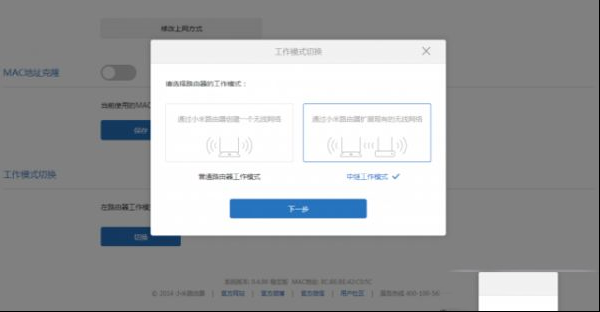 | 路由器怎么设置 路由器全部怎么安装 路由器怎么设置 路由器亮红灯哪种故障 路由器登录入口和光猫的区别 路由器怎么重启 路由器怎么连接 路由器桥接教程详细 路由器干什么用:小米路由器HD中继模式怎么使用SS小米路由器设置步骤图解 一、小米路由器HD中继模式怎么使用SS 方法如下: 1.保持路由器的正常工作,打开电脑连接小米路由器。 在浏览器中输入192.168.31.1(默认IP地址是这个,如果修改过的话,请输入你修改后的IP地址);或者打开miwifi.com进入管理页。 2.进入页面输入路由器密码。 然后点击路由设置,然后选择“上网设置”。 3.在“上网设置”界面中有路由器中继模式的设置项目。 下拉找到工作模式切换选项点击“切换”按钮。 4.点击选择“无线中继工作模式”,并且点击“下一步”按钮。 5.弹出中继模式的设置页,路由会自动扫描无线信号。 6.搜索完成后,会选择一个路由进行连接。 并点击“一键无线中继”按钮。 等待大约30s以后,页面会弹出提示“小米路由器一键中继成功”的消息提示。 二、小米路由器设置步骤图解 小米路由器HD/Pro图解设置教程 问问小宇 2019-09-22 6695人看过 手把手教你快速设置新小米路由器HD/Pro相关设置 工具/原料 more 电脑收到其他维修同行的一台(手机亦可) 小米路由器HD/Pro一个 网线一条 方法/步骤 1/5 分步阅读 给路由器通电,找到xiaomi开头的WiFi连上,新路由器默认无密码。 如图所示: 2/5 打开手机浏览器,在地址栏中输入小米路由器的ip地址:192.168.31.1或是miwifi.com ,进入路由器管理后台,然后点击【同意,继续】。 如图所示: 3/5 给WiFi设置名称和密码,然后点击【下一步】,如图所示: 4/5 给管理员设置管理密码,确认ok后,点击【配置完成】。 如图所示: 5/5 以上设置OK后,就可以连接设置好的WiFi了,然后进入路由器后台管理,根据需要选择或是查看,如想设置宽带,选择常用设置---上网设置,然后选择正确的上网方式(PPPoE、DHCP、静态IP)进行设置。 如图所示: 小米路由器ip地址修改方法 1/4 需要先登陆到小米路由器的设置界面,然后在点击【常用设置】---【局域网设置】选项下,修改【局域网IP地址】选项下的IP地址即可,详细步骤如下所示。 2/4 登录到设置界面 电脑连接小米路由器后,在浏览器中输入:miwifi.com 或者192.168.31.1并回车,然后输入管理密码,登录到设置界面。 如图所示: 3/4 修改小米路由器IP地址 点击【常用设置】---【局域网设置】---找到下方的【局域网IP地址】,然后修改下面的IP地址成需要的设置的IP地址,点击【保存】。 如图所示: 4/4 最后在弹出的对话框中,点击【确认】,路由器新ip地址设置ok。 如下图所示 注意事项 小米路由器默认ip地址:192.168.31.1或是miwifi.com 电脑ip地址设置成自动获取ip地址 小米路由器ip地址如非必要,个人不建议修改小米路由器的IP地址,使用默认的192.168.31.1管理路由器即可 小米路由器HD 小米路由器PRO 小米路由器设置 编辑于2019-09-22,内容仅供参考并受版权保护 赞 踩分享阅读全文 路由器什么品牌的好-京东电脑办公,购特色! 关注路由器的都在看 路由器什么品牌的好-「京东」电脑办公,笔记本/CPU/鼠标/键盘/打印机,应有尽有,一站购齐! 北京京东世纪信息技术有限公司广告 相关经验 小米路由器怎么设置无线中继模式 01:23 48.4万人看过 小米路由器怎么设置局域网IP地址 1.7万人看过 无线路由器排名,网络设备排行榜,天猫电器城。 杭州阿里妈妈软件服务有限公司广告 小米路由器如何设置DHCP静态IP分配? 6231人看过 小米路由器怎么设置无线中继模式 4.8万人看过 小米路由器中继后如何进入后台管理页面 01:22 47.0万人看过 如何在手机上使用小米路由器APP控制小米路由器 01:03 3.3万人看过 小米 2s 数据线「京东」-综合网上购物商城! 值得一看的数据线相关信息推荐 京东 下载 北京京东世纪信息技..广告 小米路由器中继后如何进入后台管理页面 1.7万人看过 小米路由器初始化失败,亮红灯,重刷系统 7626人看过 【图文教程】小米路由器怎么设置 01:13 10.0万人看过 小米路由器3设置 01:03 6.1万人看过 买100兆的光纤应该买什么样的路由器,天猫电器城,优品网络设备。 值得一看的光纤相关信息推荐 杭州阿里妈妈软件服务有限公司广告 小米路由器ac2100怎么设置 1.1万人看过 小米wifi设置界面网址 4.0万人看过 小米路由器如何设置解决正在获取ip地址 01:20 46.4万人看过 小米路由器 设置方法 1.3万人看过 小米路由器mini中继模式(无线桥接方式) 3.9万人看过 分享让生活更美好 |