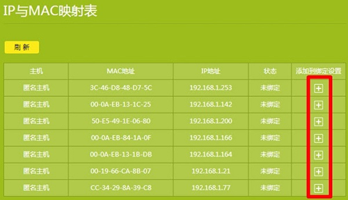 | 一、老款TP-Link路由器IP与MAC绑定设置 1、在浏览器地址栏中输入192.168.1.1——>在“用户名”、“密码”中输入:admin——>点击“确定”。 2、点击“DHCP服务器”——>“静态地址分配”——>“添加新条目”,在“MAC地址”填写:电脑或者手机的MAC地址(本例中是:00-13-8F-A9-6C-CB)——>“IP地址”填写:需要绑定的一个IP地址(本例中是:192.168.1.101)——>然后点击“保存”。 二、新款TP-Link路由器IP与MAC地址绑定设置 1、打开浏览器,输入 tplogin.cn ,输入密码进入路由器管理页面。 2、点击“应用管理”。 3、找到“IP与MAC绑定”的选项,点击“进入”。 4、点击“进入”,在列表中查看未绑定条目,找到需要绑定的主机,点击添加到绑定设置中,如下: 温馨提示: (1)、根据界面提示可编辑主机信息。 (2)、若在IP与MAC映射表中未找到您需要绑定的主机信息,可点击添加手动填入主机信息添加。 (3)、若想了解更多,请点击页面的问号获取更多信息。 |