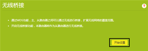 | 1、确认需要桥接的信号参数,即主路由器的无线信号名称、无线密码,以下仅做本文举例: 注意:无线桥接(WDS)的所有操作均在副路由器完成,无需设置主路由器。 2、电脑连接到副路由器的LAN口或无线信号,并使用tplogin.cn登录管理界面。 3、点击应用管理,如下: 4、找到无线桥接,点击进入: 5、进入无线桥接设置向导后,点击 开始设置,如下: 6、路由器自动扫描周边无线信号 7、选择扫描到的主路由器信号,并输入主路由器的无线密码,点击 下一步: 注意:如果扫描不到主路由器的信号,确认主路由器开启无线功能,且尝试减小主、副路由器之间的距离。 8、主路由器会给副路由器分配一个IP地址,用于后续管理路由器,建议记下该IP地址,点击 下一步。 9、设置副路由器的无线密码,直接点击 下一步,如下: 注意:此处可以设置副路由器的无线参数,但是如果要实现无线漫游,则必须保持不变。 10、再次进入 应用管理 >> 无线桥接 中,可以看到桥接状态为 桥接成功。如下: 至此无线桥接(WDS)设置完成,无线终端连接zhangsan,有线电脑连接主、副路由器的LAN口即可上网。终端移动过程中,可以实现主、副路由器间的自动漫游。 |
