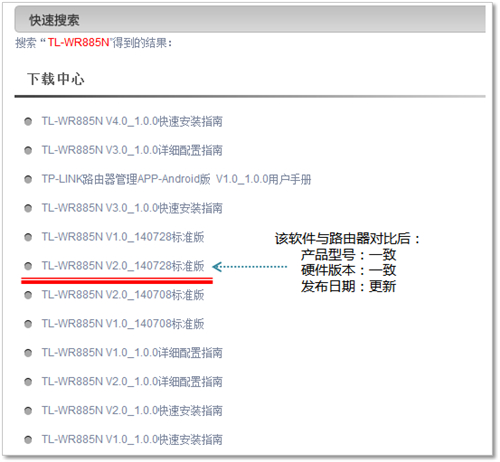| 1、使用管理地址tplogin.cn登录路由器管理界面,在左侧第一栏的运行状态中查看路由器当前的软件和硬件版本,建议记录下来,如下图: 温馨提示:为了避免因下载错误软件导致升级失败,请记录您产品的以上信息。 2、如果进入管理界面,显示的界面如下图: 该界面为云路由器的界面,TL-WR885N4.0及以上的版本均云路由器,该路由器支持在线升级,无需手动下载升级程序,详细设置方法请点击参考文档:云路由器在线升级方法。 3、访问TP-LINK服务支持,在资料搜索栏中输入产品型号中的数字部分,会自动匹配您的型号,选择正确的型号,如下: 4、在搜索结果的下载中心中点击更多,展开下载列表: 5、在下载文件中找到路由器型号的硬件版本全部吻合的软件(结尾为标准版的文件): 注意:不同型号、硬件版本之间无法相互升级,只有型号、硬件版本相互吻合才能成功升级。 6、点击文件后,点击立即下载按钮,将文件保存到电脑桌面,如下: 7、鼠标右键点击,将下载到的升级软件解压到桌面上,如下图: 注意:如果无法解压,请下载并安装WinRAR或WinZip解压缩工具。 8、解压后会生成新的文件夹,后续升级中需要浏览到这个文件夹,请记住文件夹的存放位置。 9、登录路由器界面,电脑有线连接到路由器的LAN口,为了升级稳定顺利,不建议通过无线连接进行升级。打开浏览器,登录管理界面并进入系统工具>软件升级,如下图: 10、选择升级文件,此处需要选择已经解压后的升级软件,导入路由器后即可升级。在页面处找到“浏览”或“选择”按钮,如下图: 温馨提示:较低版本的浏览器显示该页面可能错位,您只需点击按钮即可。 11、打开解压后的文件夹,选择bin类型的文件,点击打开,如下图: 12、开始升级,看到 文件 中已显示选择好的升级文件路径。无需做任何修改,直接点击 升级 按钮,如下图: 13、提示框点击 确定,如下图: 14、升级过程中路由器不能断电,否则将导致路由器损坏。升级成功后路由器将自动重启。整个过程大概持续2-3分钟,请耐心等待。 15、重启完成后,请重新登录管理界面,在运行状态中观察到已经升级到最新版本: 16、升级完成后? 一般情况下,升级后路由器中的配置还在,您无需做任何设置即可按原来的方式使用。但是个别路由器或升级特定的软件升级后,路由器原有的配置会丢失,您需要导入配置文件,或者重新手动设置路由器上网。 注意:如果配置文件会丢失,我们会在升级软件下载页面会提示。 |