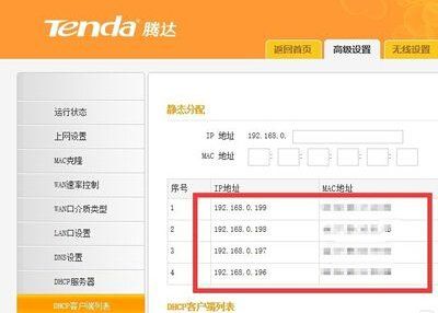 | 路由器怎么设置 路由器全部怎么安装 路由器怎么设置 路由器亮红灯哪种故障 路由器登录入口和光猫的区别 路由器怎么重启 路由器怎么连接 路由器桥接教程详细 路由器干什么用:路由器怎么限制上网电脑的台数无线路由器怎么限制连接台数 一、路由器怎么限制上网电脑的台数 限制路由器多台电脑上网方法 :设置限速即可。 1、进入路由器:打开浏览器-输入192.168.1.1(一般路由器地址是这个)进路由器登录界面。 2、输入正确的用户名和密码进入路由器管理后台。 3、我们要先查看已有的IP和对应在的MAC地址栏。 点击左侧的“DHCP服务器”,选择“客户端列表”,记下右边显示的对应的IP和MAC地址,这个一定要记正确。 4、再点击左侧的“静态地址分配”链接,在右边点击“添加新条目”按钮。 5、在右边输入正确的对应的MAC和IP地址,再将“状态”选择为“生效”,再单击“保存”按钮保存,此步是为了以后网速和流量控制永远无误。 6、重复前面两步,至到添加完成所有的IP。 7、再单击左侧的“IP带宽控制”链接,在右边勾选上“开启IP带宽控制”复选框并在下面选择正确的网速。 8、再在下面的规则中填写要控制的IP和带宽大小,同时也设置自己的电脑“保证最小带宽”,并且全部选择“启用”,再单击“保存”按钮保存全部的设置即可。 二、无线路由器怎么限制连接台数 1,打开浏览器,输入无线路由器IP地址登陆后台Web管理界面,同时根据路由器背面所提供的登陆用户信息,完成登陆无线路由器后台Web管理界面操作。 2,从打开的路由器后台Web管理界面中,切换到“高级设置“-“DHCP服务器”选项卡,勾选“开启DHCP服务器”,同时设置“IP地址池”范围,使之只包含特定数据的电脑IP。 如图所示,小编设置只允许四台计算机连接此无线路由器。 3,接下来切换到“高级设置”-“DHCP客户端列表”选项卡,根据电脑MAC地址,分别为四台计算机分配静态IP地址,如图所示: 4,设置完成后,切换到“系统工具”-“重启路由器”选项卡,点击“重启路由器”按钮,以“重启路由器”实现保存设置操作。 5,同时对于各计算机,将“IP地址获取方式”设置为“自动获取”即可。 在“网络连接”窗口中,右击“本地连接”并从其右键菜单中选择“属性”项,将“TCP/IP v4”设置为“自动获取IP地址”即可。 |