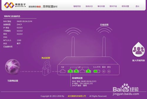 | 路由器怎么设置 路由器全部怎么安装 路由器怎么设置 路由器亮红灯哪种故障 路由器登录入口和光猫的区别 路由器怎么重启 路由器怎么连接 路由器桥接教程详细 路由器干什么用:路由器cfe升级登陆路由器怎么进cfe刷机 一、路由器cfe升级登陆 路由器设置密码后网络无法连接 不知道路由器无线密码的时候要先进行路由器的设置。 设置方法: 路由器的背面有后台IP地址及账号密码,登陆后台可进行相关设置,左侧为设置导航,右侧为设置内容,在左侧找到设置向导后按提示一步步操作,有两点需要注意,一是上网账号及密码,一是无线网络密码的设置,然后点击完成。 知道路由器的无线密码的时候直接用手机进行设置。 设置方法: 手机-设置-WLAN-对应的路由器名称,如果不知道路由器名称的话就用手机离路由近距离,信号强的就是路由器的无线网络名称,点击无线网络名称,输入正确的无线密码,等待连接。 二、路由器怎么进cfe刷机 工具/原料 wifidog: wifidog 是一套被广泛使用的强制认证 captive portal 协议。 当未认证授权的用户尝试访问网络时,路由器 强制用户的浏览器转向目标服务器上的认证界面(或者类认 证界面) ,用户按要求输入认证信息或者做相关操作后,服 务器重定向用户浏览器访问路由器网关上的 API 获得认证通 过 固件 :也称 firmware, 通常用于嵌入式领域,泛指运行于硬 件之上的操作系统软件。 刷固件或者更新固件是指删除原系 统,更换新的系统软件。 在 PC 领域,这类似于重装 Windows 操作系统,尤其像安装 ghost 版的操作系统。 与现在手机领 域里很活跃的刷 ROM 同理 TFTP: TFTP 本身是指简单文件传输协议,广泛用于嵌入式系 统,比如网络启动和更新系统固件。 本文是指采用 TFTP 协 议的软件客户端, 通过它向运行 TFTP 协议的服务端(Q3 路由 的 cfe 系统)上传固件 磊科 Q3 路由器收到其他维修同行的一台 RJ45 网线一根 Windows 电脑收到其他维修同行的一台 236w 去验证清 NVRAM.bin 原厂固件 JikeBox-free-210407171.trx 集客 wifidog 免费固件 TFTP 智能刷机工具 1.62.exe TFTP 刷机上传客户端 方法/步骤 准备必备材料 开始刷机 连接网线 将 Windows 电脑和磊科 Q3 路由器上电并开机,并用网 线直接连接 Q3 的 LAN 口和电脑的网口,如下图 提示: 通常建议不要接两头的 LAN 口,比如 LAN1 与 LAN4,有些机型有端口反转的 情况,可能会影响到 ping 测试结果和判断。 建议插在 LAN2 或者 LAN3 上 配置电脑 IP 地址 设置 Windows 电脑的 IP 地址为 192.168.1.2,子网掩码 为 255.255.255.0,网关和 DNS 可以不用设置。 如果你不知 道如何进行设置,你最好去网上查找一下资料 如果 Q3 的 LAN 口默认地址没有修改,路由开机并启动完成后,在 Windows 命令行里 ping 路由器的 LAN 口地址 192.168.1.1 应该能 ping 通。 如果是笔记本电脑,带无线,强烈建议你把无线网卡停用。 很多无线的路由 的 ip 也是 192.168.1.1,会对刷机造成严重干扰,具体原因不解释。 刷过渡固件去 CFE验证 提示: 如果不是磊科 Q3,本步骤并不是一定是必须的。 也千万不要照般本 步骤, “236w 去验证清 NVRAM.bin”只针对磊科 Q3 硬件,其它的硬件刷 这个很容易变砖。 Q3 必须要去 CFE 验证是因为磊科公司防止用户误刷造成严重问题,对刷 入的固件进行了校验,非磊科自己的固件,禁止刷入。 本步骤只为移除 这个限制。 TFTP 刷机的接口只有在路由上电开机后的几秒钟内才可能开启,这时候 系统启动进入了 cfe 环境。 通常可以通过 ping 值为 100 判断系统处于 cfe 环境中。 通常情况下,ping 值 ttl 不为 100,TFTP 肯定刷不了。 打开软件 “TFTP 智能刷机工具 1.62” ” ,进行如下 配置: 路由器 IP 地址处填“192.168.1.1” , 固件文件处选“236w 去验证清 NVRAM.bin” , 选中“智能刷机,TTL 为下面的值时自动刷机 100” 如果更新失败,自动重试刷新 flash 次数处选 1 无需点”更新固件”那个按钮 重启路由器(如果没有开机,上电开机即可),由于选 中了“智能刷机” ,路由重启过几秒后就自动开启 TFTP 上传固件并刷机,无需自己点”更新固件”按钮,如下图 刷集客盒子 Q3 免费固件 选择集客盒子 wifidog 免费固件 打开 TFTP 智能刷机工具 1.62,路由器 IP 保持为 192.168.1.1 不变, 固件选择 JikeBox-free-210407171.trx 文 件,并再次选择中“智能刷机,TTL 为下面的值时自动刷机 100”,如下图: 重启路由器再次刷机 再次重启路由器, 重启路由器会再次触发 TFTP 软件开始 刷机。 特别提示: 本次成功刷机后,系统会自动重启两次,在此过程中, 请不要手动重启路由 器或者断电。 本次过程可能会有一点长(比如三分钟以上),可以给电脑设置一个 192.168.8.x 的 IP,并 ping 192.168.8.1 来判断是否已启动集客系统。 也 可以用手机扫瞄 wifi,来判断是否有新的开放式的 wifi 热点。 7 刷机完成后, 将 Windows 电脑的网卡改成 DHCP 自动获 取 IP 地 址 方 式 , 这 时 电 脑 应 该 能 获 取 到 一 个 192.168.8.x/255.255.255.0 的地址。 打开浏览器,输入 http://192.168.8.1 登陆集客盒子,用 户名 admin,密码 admin,如下图 |