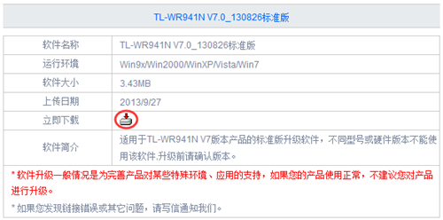 | 1、使用管理地址(192.168.1.1或tplogin.cn)登录路由器管理界面,在左侧第一栏的运行状态中查看路由器当前的软件和硬件版本,建议记录下来,如下图: 温馨提示:为了避免因下载错误软件导致升级失败,请记录您产品的以上信息。 2、访问TP-LINK服务支持,在资料搜索栏中输入产品型号中的数字部分,会自动匹配您的型号,选择正确的型号,如下图: 3、在搜索结果的下载中心中点击更多,展开下载列表,如下图: 4、在下载文件中找到路由器型号的硬件版本全部吻合的软件(结尾为标准版的文件),如下图: 注意:不同型号、硬件版本之间无法相互升级,只有型号、硬件版本相互吻合才能成功升级。 5、点击文件后,点击立即下载按钮,将文件保存到电脑桌面,如下图: 6、鼠标右键点击,将下载到的升级软件解压到桌面上,如下图: 注意:如果无法解压,请下载并安装WinRAR或WinZip解压缩工具。 7、解压后会生成新的文件夹,后续升级中需要浏览到这个文件夹,请记住文件夹的存放位置。如下图: 8、电脑有线连接到路由器的LAN口,为了升级稳定顺利,不建议通过无线连接进行升级。打开浏览器,登录管理界面并进入 系统工具 >软件升级,如下图: 9、此处需要选择已经解压后的升级软件,导入路由器后即可升级。在页面处找到“浏览”或“选择”按钮,如下图: 温馨提示:较低版本的浏览器显示该页面可能错位,您只需点击按钮即可。(PS:老版本的路由器使用TFTP工具进行升级,在升级页面是看不到“浏览”“选择”等按钮的。请按照以下操作:打开解压后文件夹->运行tftp32.exe->刷新路由器管理界面->点击升级即可。) 10、打开解压后的文件夹,选择bin类型的文件,点击打开,如下图: 11、开始升级,看到 文件 中已显示选择好的升级文件路径。无需做任何修改,直接点击 升级 按钮,如下图: 12、提示框点击 确定,如下图。 13、升级过程中路由器不能断电,否则将导致路由器损坏。升级成功后路由器将自动重启。整个过程大概持续2-3分钟,请耐心等待。如下图: 14、重启完成后,请重新登录管理界面,在运行状态中观察到已经升级到最新版本: 15、升级完成后? 一般情况下,升级后路由器中的配置还在,您无需做任何设置即可按原来的方式使用。但是个别路由器或升级特定的软件升级后,路由器原有的配置会丢失,您需要导入配置文件,或者重新手动设置路由器上网。 |