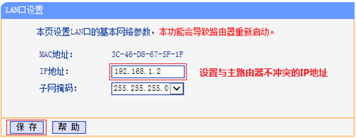 | 步骤一:设置电脑连接路由器 将电脑连接到TL-H39RD的LAN口,确保电脑自动获取到IP地址和DNS服务器地址。 注意:为了避免IP地址或DHCP服务器冲突,此处暂不将TL-H39RD连接到前端网络。 步骤二:修改无线参数 1、修改SSID(无线名称) 登录路由器管理界面,进入 无线设置 >> 基本设置,在SSID中设置无线名称,点击 保存。 注意:设置无线名称后暂不重启,继续设置。 2、设置无线密码 进入 无线设置 >> 无线安全设置。选择WPA-PSK/WPA2-PSK,设置不少于8位的PSK密码(无线密码)。设置完成后点击最下方 保存按钮。 注意:设置无线密码后暂不重启,继续设置。 步骤三:关闭DHCP服务器 在管理界面左侧 DHCP服务器 >> DHCP服务 中,将DHCP服务器选择为 不启用,点击 保存。 步骤四:修改管理IP地址 1、修改管理IP地址 在 网络参数 >> LAN口设置,修改IP地址和主路由器不相同(建议设置IP地址与主路由同一网段)。设置完成点击 保存。 2、重启路由器 弹出重启对话框,点击 确定,等待重启完成。 重启完成后,可以使用tplogin.cn登录管理界面。 步骤五:按照拓补连接线路 至此,路由器部分设置完成,将路由器接入已有网络。 连接方法:将TL-H39RD的LAN口(即1~2号接口)与前端路由器的LAN口(局域网交换机)相连。 至此设置完毕,无线终端可以连接上TL-H39RD的无线网络上网。 |