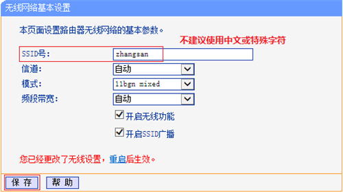 | 步骤一:设置电脑连接路由器 将电脑连接到TL-H28RD的LAN口,确保电脑自动获取到IP地址和DNS服务器地址。 注意:为了避免IP地址或DHCP服务器冲突,此处暂不将TL-H28RD连接到前端网络。 步骤二:修改无线参数 1、修改SSID(无线名称) 登录路由器管理界面,进入 无线设置 >> 基本设置,在SSID中设置无线名称,点击 保存。 注意:设置无线名称后暂不重启,继续设置。 2、设置无线密码 进入 无线设置 >> 无线安全设置。选择WPA-PSK/WPA2-PSK,设置不少于8位的PSK密码(无线密码)。设置完成后点击最下方 保存按钮。 注意:设置无线密码后暂不重启,继续设置。 步骤三:关不CHCP服务器 在管理界面左侧 DHCP服务器 >> DHCP服务 中,将DHCP服务器选择为 不启用,点击 保存。 步骤四:修改管理IP地址 1、修改管理IP地址 在 网络参数 >> LAN口设置,修改IP地址和主路由器不相同(建议设置IP地址与主路由同一网段)。设置完成点击 保存。 2、重启路由器 弹出重启对话框,点击 确定,等待重启完成。 重启完成后,可以使用tplogin.cn登录管理界面。 步骤五:按照拓补连接线路 至此,路由器部分设置完成,将路由器接入已有网络。 连接方法:将TL-H28RD的LAN口(即1~2号接口)与前端路由器的LAN口(局域网交换机)相连。 至此设置完毕,无线终端可以连接上TL-H28RD的无线网络上网。 |