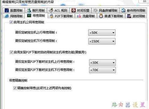 | 路由器怎么设置 路由器全部怎么安装 路由器怎么设置 路由器亮红灯哪种故障 路由器登录入口和光猫的区别 路由器怎么重启 路由器怎么连接 路由器桥接教程详细 路由器干什么用:使用路由器如何限制各端口网速路由器怎么设置端口限速无线路由器宽带端口的设置 一、使用路由器如何限制各端口网速 部分路由器带此功能,比较高端的路由器各端口分别有模块控制。 所以能达到各端口分别设置的功能。 低端路由器虽然有的也有很多端口,但一般都是由一个模块控制。 外观看起来是多个端口,但实际为一个模块上的多个模拟端口,无法实现各端口分别设置的功能。 这样解释吧,每个路由器都会有操作系统来控制路由器的配置。 在路由器的配置中,能够分端口配置的,可以达到你的要求。 不能够分配的,不能达到你的要求。 如果让我说什么路由器能达到。 这个怎么说,能达到的太多了。 另外有线无线的问题。 您问的路由器可以用有线无线我没明白。 那我分接入和接出两种情况来说。 首先说接出,使用网线接一个无线路由器。 这样,通过无线网卡的设备连接到无线路由即可联网。 再说接入,一个无线路由器连接另一个无线路由器。 这样做一般是为了放大信号的作用。 使无线覆盖面延伸。 也是可以做到的。 另:您提问的时候如果更有针对性。 更明确。 可以让大家更快速为您判断问题解决问题。 不要太笼统。 二、路由器怎么设置端口限速 如何控制局域网网速、监控局域网流量?下面是www.xiqb.com整理的一些关于无线路由器端口怎么限速的相关资料,供你参考。 无线路由器端口限速设置的步骤如下: 一、通过路由器 限制网速、限制局域网别人的网速。 通过路由 器控制局域网别人的网速是一种比较经济实惠的方法,同时现在的路由器也大都带有一些上网行为管理、网速限制和流量监控的功能,操作设置也较为简单,通常点点鼠标 ,根据IP地址来为局域网电脑分配带宽就可以了。 如下图所示: ▲路由器限制带宽、限制别人网速的设置 通过路由器你还可以设置最低保障带宽,从而实现带宽的动态分配,进一步优化了带宽限制和网速控制。 但是,路由器限制电脑网速也有一定的局限,由于缺乏对局域网电脑上网行为的具体控制,尤其是路由器在限制P2P下载(尤其是迅雷下载)、PPS影音、PPlive、QQlive、快车下载、BT下载方面的功能较为薄弱,无法有效控制P2P软件的使用;而这些P2P软件、在线视频、大型网络游戏 是企业局域网网络带宽消耗的“大户”,因而通过路由器限制网速不能从根源上治理局域网网络带宽分配不均衡的情况,因为即便你通过路由器强行限制了电脑的网速(又不能限制到很低的值,否则会影响电脑正常上网、办公),但是如果电脑一直开着上面的P2P软件来下载、看视频,那么同样对局域网网速的占用很大,同样也会导致局域网网速变慢的情况发生。 二、通过专门的局域网网速控制软件、局域网限制别人网速的软件来实现 鉴于通过路由器限制端口网速、控制局域网别人网速有一些不足,您也可以通过一些专门的局域网网速控制软件、局域网流量监控软件来实现。 例如,有一款“聚生网管”(百度搜索“聚生网管”即可下载),只需要部署在公司局域网收到其他维修同行的一台电脑上就可以看到局域网所有电脑的网络带宽占用,包括上行带宽和下行带宽,并且点点鼠标就可以实现局域网网速控制、上网流量限制了。 如下图所示: ▲通过局域网限速软件来限制电脑上行带宽和下行带宽 同时,通过聚生网管还可以限制局域网P2P软件下载 ,尤其是可以完全禁止迅雷下载、限制快车下载、禁止PPS影音、限制QQlive、屏蔽网页视频、禁止网络游戏 等,从而可以防止此类与工作无关的网络应用吞噬局域网带宽资源,从根源上防止局域网抢网速、局域网网速慢的窘况。 如下图所示: ▲限制P2P软件下载、禁止P2P视频、屏蔽网页视频 因此,相对于路由器限制网速来说,通过网管限速软件来监控局域网各个电脑的流量更为彻底和有效,同时操作相对更为简单。 同时,路由器由于核心功能是提供网络路由,如果设置过多网络行为、网速限制功能会加大路由器的负荷,甚至会影响路由器的正常工作,导致宕机、死机等情况的发生,不利于网络的安全、稳定和畅通。 三、无线路由器宽带端口的设置 你这个图片界面是限制端口的,并不是限速的 (1)首先我要说明的一点是:我不建议在电脑上用P2P,反P2P,聚生网管等限速软件进行限速,反限速。 因为在电脑上限速比较占CPU资源.别人的电脑可能没限下去,反而会把自己的电脑的网速限下去了。 而且P2P限速也是不怎么准确的。 一般是万不得已用软件限速的。 大家都用P2P,反P2P等软件的话,只会使局域网环境变的更糟糕,负担变得更重。 (2)我建议在路由器上限速,你这个无线路由器带不带限速的啊?.大家均分带宽,对谁都公平。 这是一劳永逸的方法.路由器是硬件限速,安全,稳定,效率高,而且限速准确.. (3)如果有"IP带宽控制"这一项,说明路由器有限速功能,如果没有的话,说明没有限速功能 (4)如果带宽不够,升级下带宽,这是最好的怎么修理了。 三家人共用几M带宽啊? 一般无线路由器配置如下(如果是有线路由器的话,请忽略无线设置的步骤): (0)如果是ADSL接入的话,准备两个网线,一根网线连接电脑网口到路由器的lan口,另一根连接猫