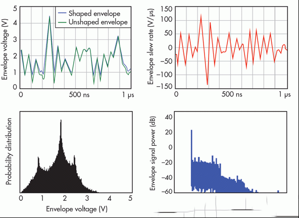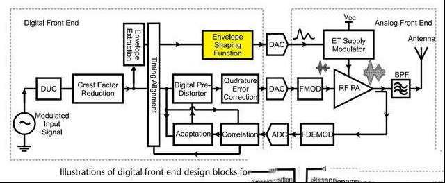 | 图1、包络跟踪(ET,Envelope tracking)系统 手机终端规划技术——高带宽 包络跟踪(ET,Envelope tracking)IC的主要实施挑战之一是带宽问题 - 它是一个电源,必须精确跟踪RF信号的包络信号幅度,同时要求不会产生削波或者引入信号失真。这要求包络跟踪(ET,Envelope tracking)电源可控制带宽是RF信道带宽的1.5至3.0倍,即对于一个20MHz正交频分复用(OFDM)信道带宽而言所需要的包络跟踪(ET,Envelope tracking)电源的带宽为30至60MHz。 图2、包络信号功率图 图2这些包络信号功率图显示了20MHz 16-QAM LTE上行链路信号的包络跟踪波形统计,包括RF波形包络,包络转换速率,包络电压的概率分布以及包络功率与带宽的关系。 图3、20MHz LTE DL信号的功率谱密度图 从包络信号的功率谱图(图2右下)可以看出,这种信号存在一个大的直流分量,然后在占用的信道带宽内有相当大的功率,然后有至少是信道带宽的三倍的相对较长的“尾部”。所需要由包络跟踪(ET,Envelope tracking) IC跟踪的尾部数量取决于系统的RF线性要求。 在信号幅度的广泛范围内要求包络跟踪(ET,Envelope tracking)IC具有高效率 也许比通过包络跟踪(ET,Envelope tracking)IC 实现绝对带宽更困难的技术要求是为包络跟踪(ET,Envelope tracking)IC 自身需要保持较高的能量转换效率。对于3G等低带宽信号而言,85%的包络跟踪(ET,Envelope tracking)IC效率依旧是一个很好的指标,但在广泛的信号类型和带宽范围内保持这种效率是一个重大的架构和IC规划挑战。 图4、电压信号要能跟踪得上包络信号的幅度变化 LTE和3G等使用的动态功率控制特点对于保持较宽的功率控制范围内的高效率也很重要。包络跟踪(ET,Envelope tracking)通常要求在信号的功率控制范围的前810 dB范围内提供节电优势。另外,随着输出功率回退,包络跟踪(ET,Envelope tracking)IC的效率通常决定了与APT相比的“盈亏平衡点”在哪个功率等级上。 图5、ET系统中带宽、效率以及线性的三角关系 用于蜂窝使用的包络跟踪(ET,Envelope tracking) IC还将包括一个较低带宽的APT模式,以在低功率等级时进行工作。这也必须在非常宽的功率输出范围(从10mW到超过1W)下以高效率方式进行工作,这使得保持低静态电流成为重要的架构和规划考虑原因。 手机终端规划技术——低噪声 在包络跟踪(ET,Envelope tracking)系统中,PA工作在压缩状态,包络跟踪(ET,Envelope tracking)路径中产生的电源噪声直接与RF输入信号进行“混合”。为了最大限度地降低PA输出端的噪声和失真,包络跟踪(ET,Envelope tracking)调制器必须以极低的噪声和失真工作。如果采用开关电源技术,则成为一个难以搞定的问题。 尤其是在具有窄双工分离的频分双工(FDD)系统中(例如美国700MHz LTE频段,中国的800MHz/900MHz LTE频段)中,包络跟踪(ET,Envelope tracking)路径的噪声和失真特别难以实现。 手机终端规划技术——广泛的摆动范围(slew rate) 瞬时RF振幅到包络跟踪(ET,Envelope tracking)电源电压的映射是在基带中通过整形表(shaping table)通过数字的方式进行定义的,整形表(shaping table)可以改变,以平衡PA和包络跟踪(ET,Envelope tracking) IC的效率和线性度。 包络跟踪(ET,Envelope tracking) IC输出必须能够在较宽的(> 3:1)电压范围内摆动,因为有限的动态摆动范围只会在功率放大器中节省有限的功率。 图6、整形表(shaping table)在ET系统中的位置 包络跟踪(ET,Envelope tracking)调制器的动态摆动范围与ET转换器的效率同样重要;增加包络跟踪(ET,Envelope tracking)摆动范围(swing range)可以增加PA的效率,但是,此时包络跟踪(ET,Envelope tracking) IC的效率会降低,反之亦然。例如,具有3V摆幅范围效率为80%的ET调制器通常优于仅具有1.5V摆幅的90%效率的ET调制器,总体系统的整体效率(ET + PA)最重要。 尽管系统效率有一个最佳的摆动范围,通常是在峰值电压与最小电压之比为3:1时最佳,但通常需要运用更宽的摆动范围来对PA进行线性化。一个典型的“IsoGain”的整形表(shaping table)可能要求4:1或者5:1的输出电压摆动范围以达到所需的线性度。 手机终端规划技术——高转换率 除了需要较高的信号带宽外,包络跟踪(ET,Envelope tracking)调制器还要求电压和电流的转换速率高,以精确跟踪包络信号的峰值和谷值。在典型的手持机输出功率水平下,运用3V摆幅准确跟踪20MHz的LTE包络需要150V /μs以上的电压摆率(slew rate )和50A /μs的电流摆率(slew rate )。高电压摆率允许包络跟踪(ET,Envelope tracking) IC响应不断变化的RF信号,向PA电源提供快速变化的电流和电压。 图7、典型的ET轨迹图 电压压摆率不够会导致“错误跟踪”,导致RF输出端的噪声和失真增加。在FDD系统中这可能是特别有害的,因为其落在接收频带中的发射噪声会降低接收机的灵敏度。 包络电压的摆率可以(在某种程度上)运用整形表(shaping table)在系统级上进行控制。然而,PA的电流消耗的动态行为主要由瞬时RF输出功率特点决定,不能轻易降低。这经常导致RF输出幅度的快速变化会引起的高带宽电流“尖刺”和“咔嚓”噪声。 |