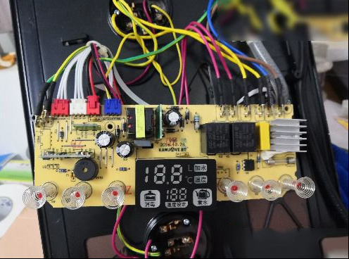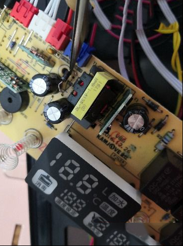 | 收到同行送来的故障机壹台金灶V6电热茶艺炉,故障表现为为无电源显示不工作;拆下外壳,测电源保险丝正常,318V整流电压正常,开关电源11.8V无输出,断电后318V滤波电压很快下降,放电后测量开关电源输出端有短路,拆下肖特基整流管SB1100测量已击穿短路,测11.8V滤波电容二端无短路现象,因无原型号,找上一只HER108换上后机器故障修复。 |