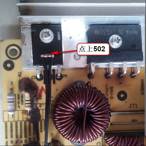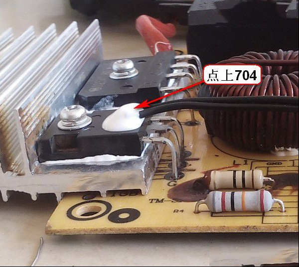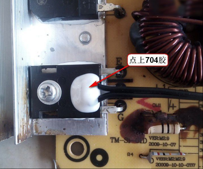 收到同行送来的故障机壹台电磁炉,故障是IGBT 整流桥损坏,更换后试机正常,于是交付给客户使用。但是这台今天又回来了,检查IGBT 整流桥又损坏,换好后插电,5V、18V正常,处于死机状态,找一块主控换上,还好上回一次在马家买了4片,换好试机正常,烧了一壶水,水还没开又咔嚓一声挂了,一检查又是老样子。这回不敢轻举妄动,仔细检查终于逮到了罪魁祸首,竟然是它(如下图所示),IGBT温度检测头,正常情况外壳和引线是绝缘的。 |
