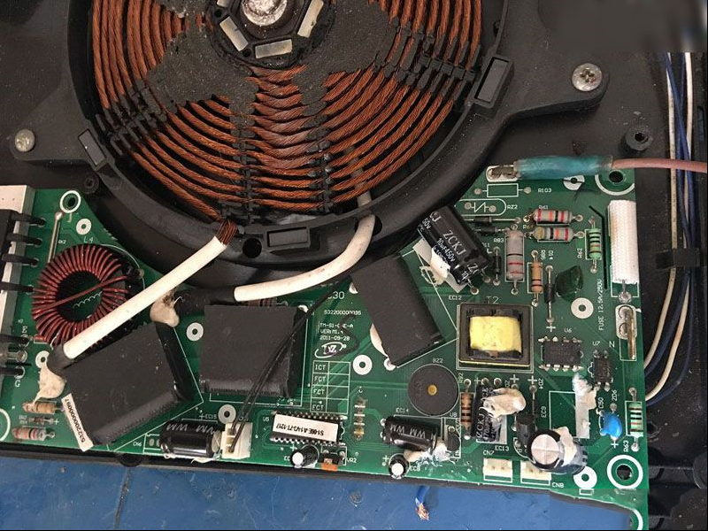 收到同行送来的故障机壹台美的RT2112触摸电磁炉,通电没有反应,也没有滴的一声。插电开机什么反应没有,查看保险没有烧,整流有300伏输出,但是8012的5、6、7、8脚没有295V。最后更换电源模块8012后故障修复。另外这款电磁炉有时22欧姆电阻断路也会导致此类故障。 |