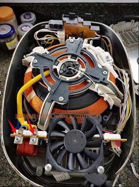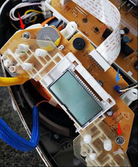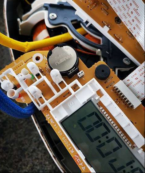| 收到其他维修同行的一台TIGER虎牌JKW-A10S电饭煲,显示00:00 而且不停闪烁,时钟没了。初步判断是电池没电了。准备换电池,拆开后发现电池型号为2450,而且电池碰焊后直接焊在电路板上,有点麻烦。网上淘了两个电池,再加个电池座,准备把它弄成可以直接操作的。具体过程如下图所示。 打开后盖。按箭头打开螺丝。 看到没?拔掉蓝色的接头,把电路板拿到电饭煲外焊下电池,再焊上电池座,装上电池。这就完工了。如下图所示。 往回装,就算完工了。 接着调整时间: 1.接上电源,按小时键调整小时,按分钟键调整分钟 2.按manu键确定,看到数字中间的:闪烁 一直通电一天到第二天拔电,一切正常。 |