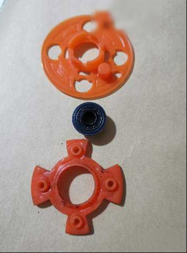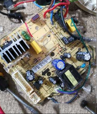 | 收到同行送来的故障机壹台九阳豆浆机,故障表现为不打浆,设置果汁档确实不打浆,用手转动电机轴转不动。拆开电机水封,发现电机轴已生锈。看来坏了有些日子了。电机轴水封坏了,导致电机进水。测电机两极阻抗44欧,这是220伏直流电机,额定电流0.75安,根据欧姆定律判断电机短路损坏。 检查电机控制线路,发现继电器给9伏供电不导通,保险丝烧毁。更换电机,水封(上食品级润滑脂),继电器,保险丝后上防水胶,故障修复。 |