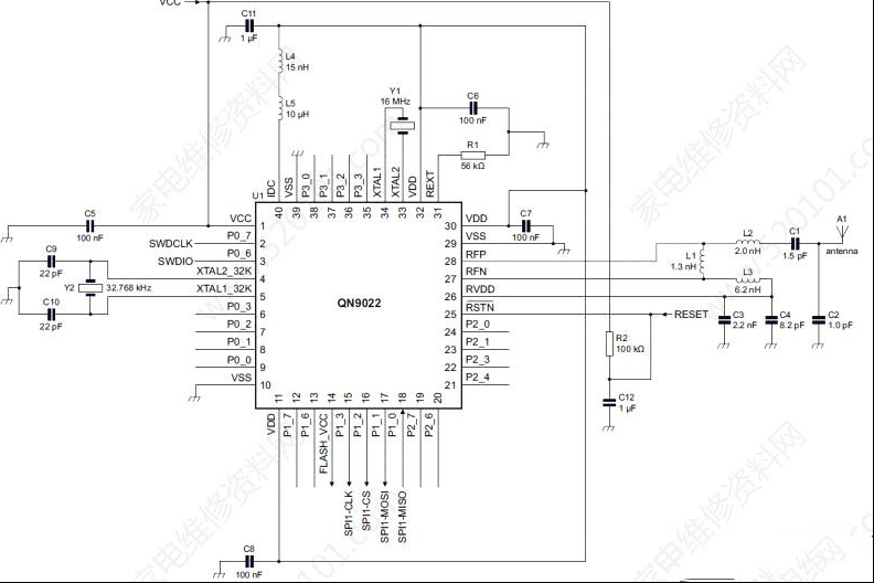 | 收到同行送来的故障机壹台米家电水壶,刚开始以为是一般的机械式电水壶,满口答应,第二天打开一看是米家恒温电水壶,手柄上还有蓝牙标记,电水壶用蓝牙控制,我还是第一次看到。立马插上电按煮沸、保温两按钮无反应,手机蓝牙也搜索不到设备。 打开电水壶底部,检查主板上电源AC 220V正常、整流后DC 310V正常,非隔离降压模块输出DC 9V正常、供手柄上蓝牙模块电压3.3V也正常,检查加热控制继电器线圈、接点正常,拆下来测试动作/返回电压也正常,但继电器上有4.87V电压,深入检查驱动继电器的三极管基极电压是从蓝牙控制模块来,基极上有0.64V电压,检查此控制回路电阻元件正常。 维修了一天没有结果,只能怀疑蓝牙控制模块,从网上搜索到该蓝牙控制模块上的芯片的相关电路图。检查触摸按钮芯片TS02N,分别用手接触煮沸、保温两按钮,对应的out1、out2电位由3.3V变0V,松手后又回到3.3V,说明按钮控制回路正常,该两点电位送到蓝牙模块后蓝牙模块无反应,怀疑蓝牙芯片的外回阻容器件,检查外回电阻正常,电容也正常;决定怀疑16M晶振,更换X1晶振,一上电按钮灯瞬间一亮,奇迹出现。 下载米家APP到手机,选择电水壶,蓝牙链接成功,烧开水手机上显示温度一度一度上升,直至沸腾继电器动作断开加热,保温功能选择80度测试, 当温度跌至75度时自动加热至80度后断开加热,一切都恢复正常,故障修复。 |
