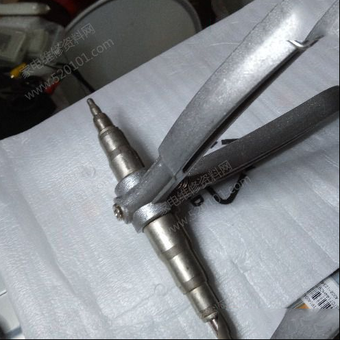 | 收到故障机过好几台美的微波炉的旋钮易坏,以前一直想不到什么好办法,用的细线密绕,用502胶水加固。今天修的时候突然想到给它套个“金戒指”,如下图所示,铜管用Φ10mm的,涨管器必须用图中的那种,可以随意控制大小,很好用。 |