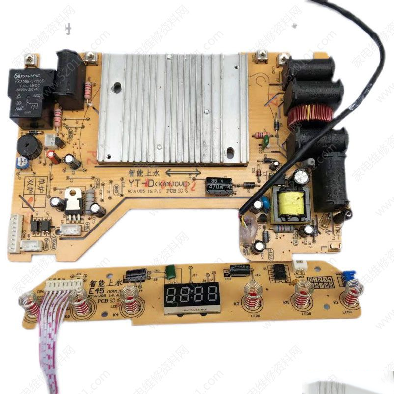 | 收到同行送来的故障机壹台金灶S100电茶壶,故障表现为通电开机显示E2代码,拆开电茶壶,目前电路板烧焦、击穿,于是用跳线的方式修复,并且更换了电阻R13,之后通电试机,电茶炉正常工作。由于个人经验有限,此故障案例仅供大家参考。 |