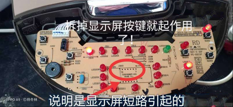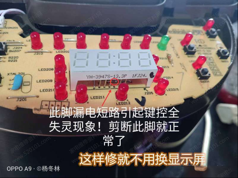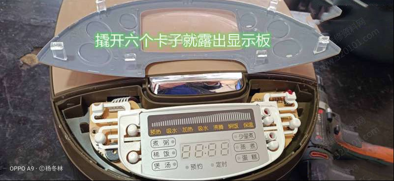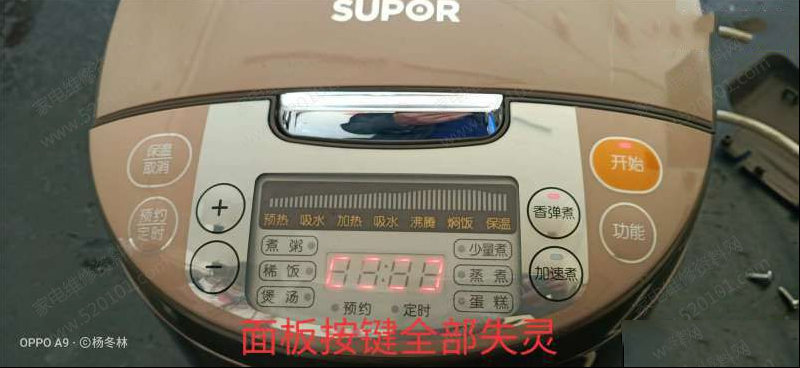 | 收到同行送来的故障机壹台苏泊尔CFXB40FC833-75电饭煲,故障表现为上电后按面板按键全失灵故障,无法加热工作。检查上盖感应器正常,没有断信号线情况。只好拆开面板,检查各个按键也不存在进水引起的漏电短路情况。怀疑可能是显示屏问题产生的,于是拆下显示屏,再通电试机,结果各按键都活了。 又重新装上显示屏,在焊接每一个显示屏脚位时,都上电试一下机,看看按键是否出现失灵情况。如果当焊到其中一个脚位时,再次出现按键失灵情况,就说明此脚有问题了,只要剪掉此脚或脱焊空在那里就行。 一般情况下,显示屏的各脚不会全短路,所以只要断开短路的那个脚位,面板按键就可以工作了,缺点是显示屏会出现缺笔画现象,但不影响电饭煲工作,也省去一块显示屏。 |