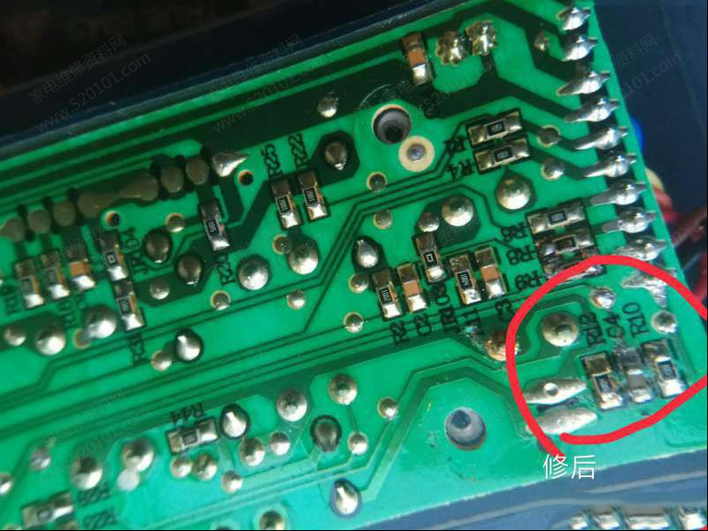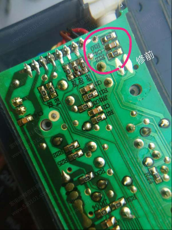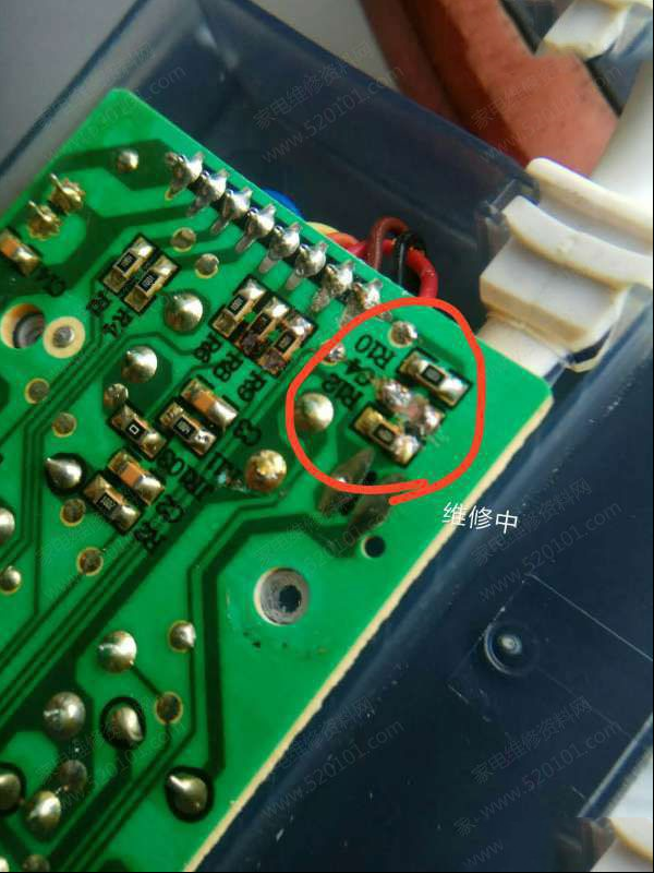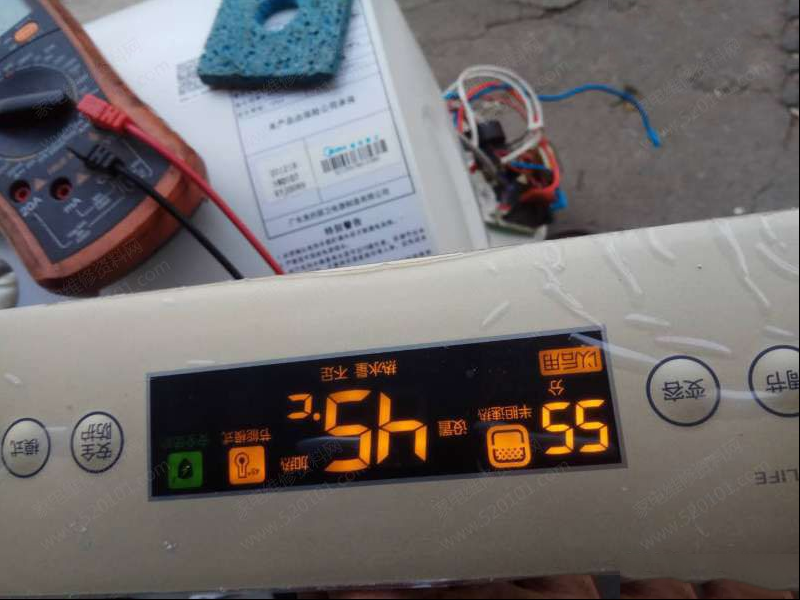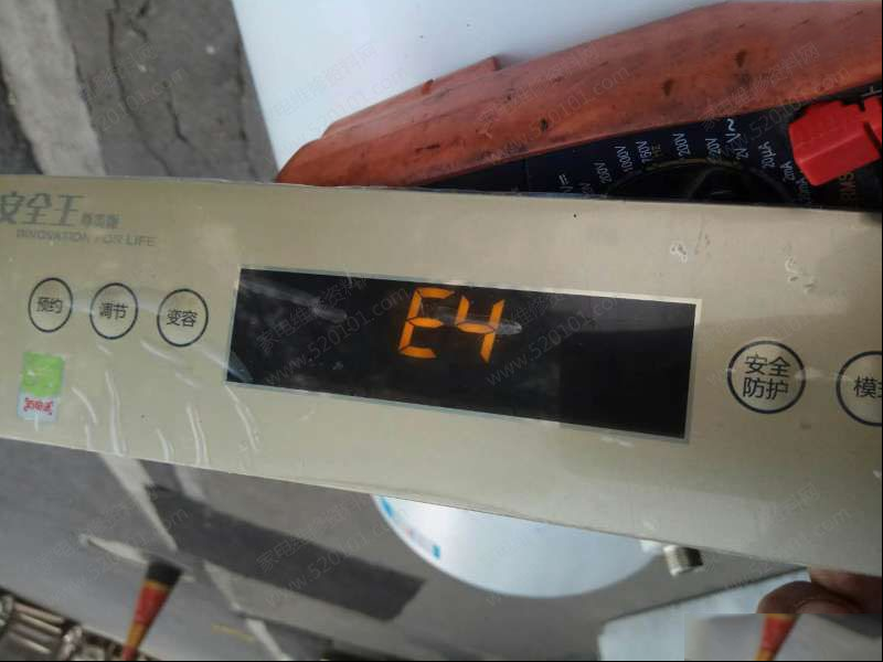 | 收到同行送来的故障机壹台美的F60-30DM7(HEY)密闭型储水式电热水器,故障表现为显示E4故障,拆开热水器,发现是顶部传感器电路中的贴片元器件C4引起E4问题,更换后故障修复。顺便检查5V、12V及插接组件良好。 |