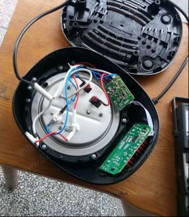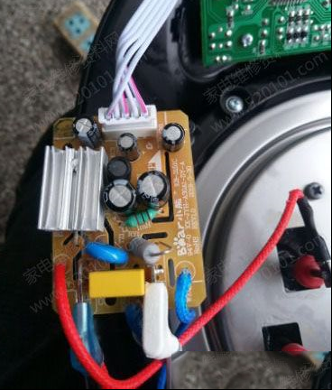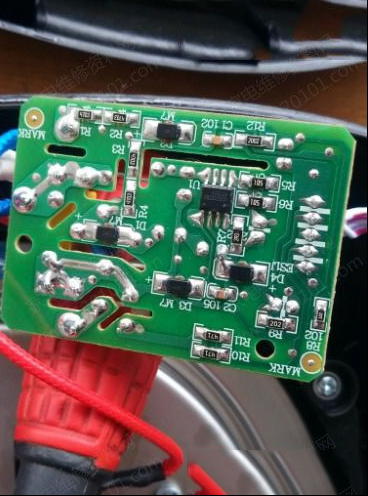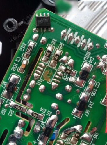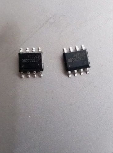 | 收到同行送来的故障机壹台小熊JYH-A30A1煎药壶,故障表现为电源不通电,拆开煎药壶,这种样式还是头一次见,以前也修过煎药壶但都是壶状电加热一体,这种是上下可分开分体式。开盖检查,电源电路太简单,三两下查出是芯片损坏导致无电源输出。贴片芯片型号是OB2222ECp,其③脚供电启动端对②脚地电阻几乎为零。查看备件资料有货,分尾号ECP和MCP两种,找出上板,故障修复。 |
