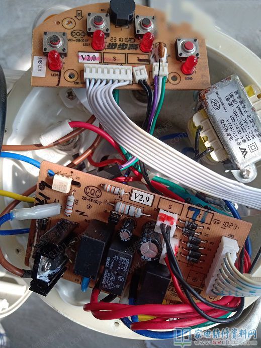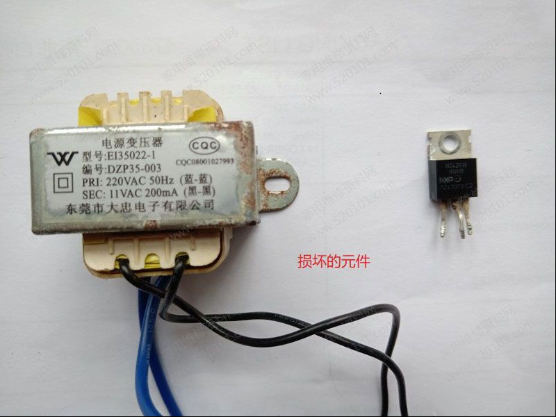 | 客户拿来一个步步高豆浆机,型号是A505,指示灯闪,不能打豆浆。拆开之后发现里面有较多水珠,应该是进水了,可能控制板受潮漏电。 拿电吹风吹干,测试电源电压正常,测量控制板LED指示灯和开关没有漏电现象。 通电试机还是电机不转,断电,拿万用表测试电机没有断路,是正常的。 怀疑对象只有继电器和晶闸管了。 焊下晶闸管BTA208测量,T1和T2脚阻值只有9.5欧姆,明显已经损坏,手上没有此型号晶闸管,只找到了BTA16,不管了换上试机,电机受控运转,至此以为机器已经修好。 装机放上花生,打算打一杯花生浆犒劳自己一下,启动机器,听着机器内部加热烧水的声响,美滋滋的等着,结果事与愿违,花生浆打到了一半,机器突然声息俱无,指示灯也不亮了,又出故障了。那个无奈,只有重新拆机检查。此机用了一个11v变压器供电,测初级电压正常,次级没有11v交流电,拆下测量初级开路,变压器坏了。 没有这种变压器更换,如何维修呢,反正疫情当前,不能出去,算了,自己拆了重绕初级线圈吧。费力拆下硅钢片,拿下线圈,发现初级线圈串有温度保险,测量是保险开路。 直接拆了保险,重新焊好初级引线,测量线圈完好。赶紧装好变压器,通电试机,电源恢复正常。装好机器,重新放入花生,哎,总算是喝上一杯花生浆了。 |