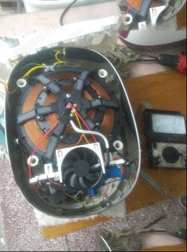 | 收到同行送来的故障机壹台苏泊尔电磁电饭煲,故障表现为无电源显示故障,开盖直奔玻璃泡,正常,心想故障在五脚贴片电路,应该可以搞定。但检查一番后,电源输出17V正常,降压稳压后5V也正常,心想坏了,又是显示板,头都晕了。拆开,显示灯板打开一看,箭头所指32.768K晶振,把它的皮外套清理干净后故障修复。 |