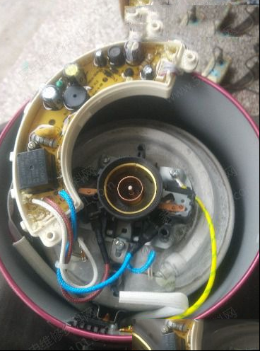 | 收到同行送来的故障机壹台苏泊尔SWF17S16A电水壶,故障表现为显示操作正常不加热故障,打开底盖目测判断继电器坏,但此继电器被胶灌注,一时也难以代换,况且只是推断还不是确诊,保险起见还是按步就班,拆开手柄查电控加热驱动信号随烧水指令有5∨输出,果断拆下换上个15A的继电器装上试机正常(原机10A/250V继电器,1300w发热底盘)。 因此板采用贴片七脚非隔离稳压电源芯片,为了日后能维修此电源部分,完工后特意掀去芯片上面的灌胶,查看丝印为SC1117DG。 |