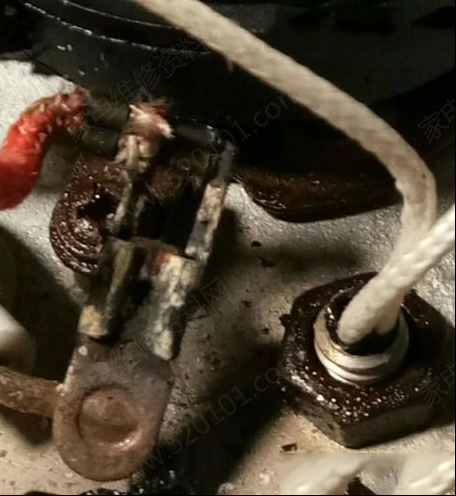 | 收到同行送来的故障机壹台美益佳MYJ-318A1养生壶,故障表现是通电后显示、操作正常,不加热。考虑温度传感器出问题的可能性大一些,按照先易后难的一贯原则,先测壶体底部与底座接触的圈圈。经侧,有一组阻值接近100k Ω,应该是温度传感器。另一组阻值达500k Ω以上,显然不正常。拆开壶体,发现发热盘的一个接线端子已严重烧坏。将固定在发热盘上的接线端子打磨掉表面的氧化层,更换接线上的接线卡子,故障机修到这里,终于修好值得探讨。。 |