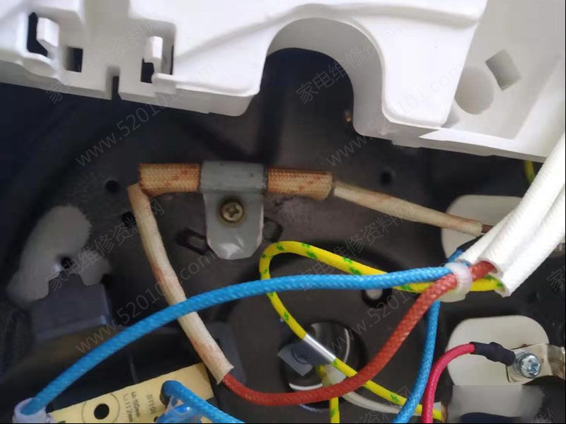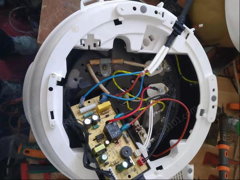 | 收到同行送来的故障机壹台电饭煲,故障表现为插电没反应,指示灯不亮,客户说做着饭突然就没反应了,客户走后拆开一看果然是温度保险断了,原机温度保险是原厂那种175度的,如下图所示,厂家可能考虑到烧保险后需要断两根线吧,所以设计成这种,手里没这种保险,于是换成常用电饭煲的185度保险,试机一切正常。 |