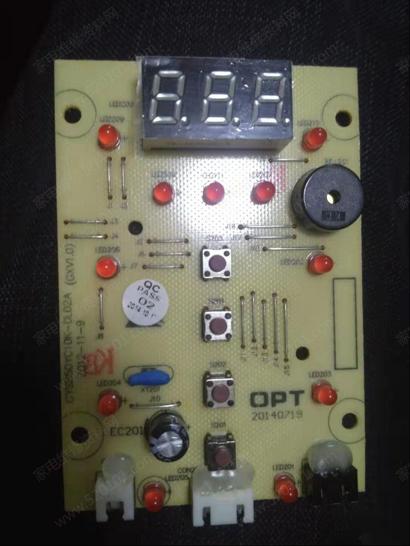 | 收到同行送来的故障机壹台苏泊尔CYSB50YC10A-100电压力锅,拿来时的故障表现为能上电,电脑板数码有显示,无法进入操作模式,按功能键没有反应,拆下锅的底部电源板检查经过测量5V电压正常,继电器SRD-S-112DM线圈断开,判断继电器损坏,更换了新的电源板,以为一切都搞定了,通电测试,还是不能进入操作模式,按功能键也无法进入功能模式,当时的感觉我是判断错了,经过反复测量确实继电器损坏了,再给电发现初始化过程好像有了(所有灯都亮一下),保温按键正常,压力锅也能加热保温,目前还是无法进入工作模式,我判断电脑板可能有问题,拆下后发现电脑板的唯一芯片被苏泊尔人为刮花,看不到型号。目前就到了这个状态,更换电脑板后,功能一切正常。 判断应该是电脑板的芯片有问题,或者这个芯片里面的程序出现问题。 |