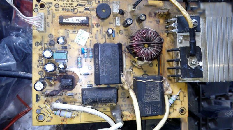 | 最近收到同行送来的故障机壹台美的sh1982电磁炉,用户刚拿来时报警不加热,拆开电磁炉测量电阻R3开路,更换上去之后,谁知第二天用户又拿来说是老毛病,再次测量让R3、R19、R17结果正常,测量R4、R5、R37、R32都正常,上机可以加热。 过了一小时开机,还是不加热,滴滴报警,于是直接将R3、R19、R17用510K电阻,R4、R5、R37、R32用1M电阻代替,不管什么时间开机一切正常。用户拿走已一星期一切正常,可调都是用331贴片代换的。 |
