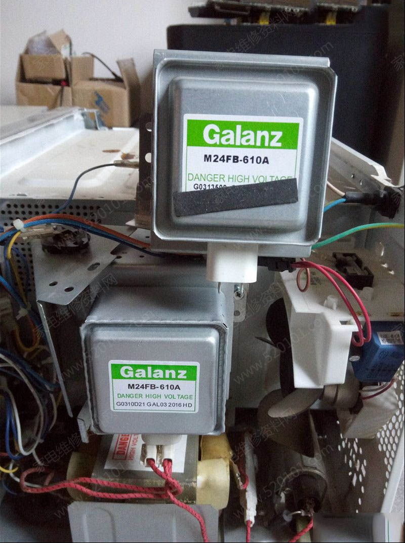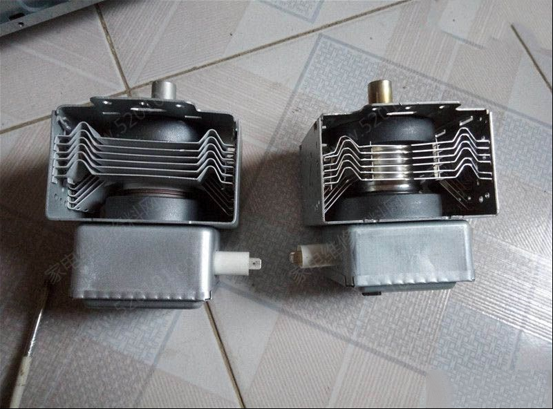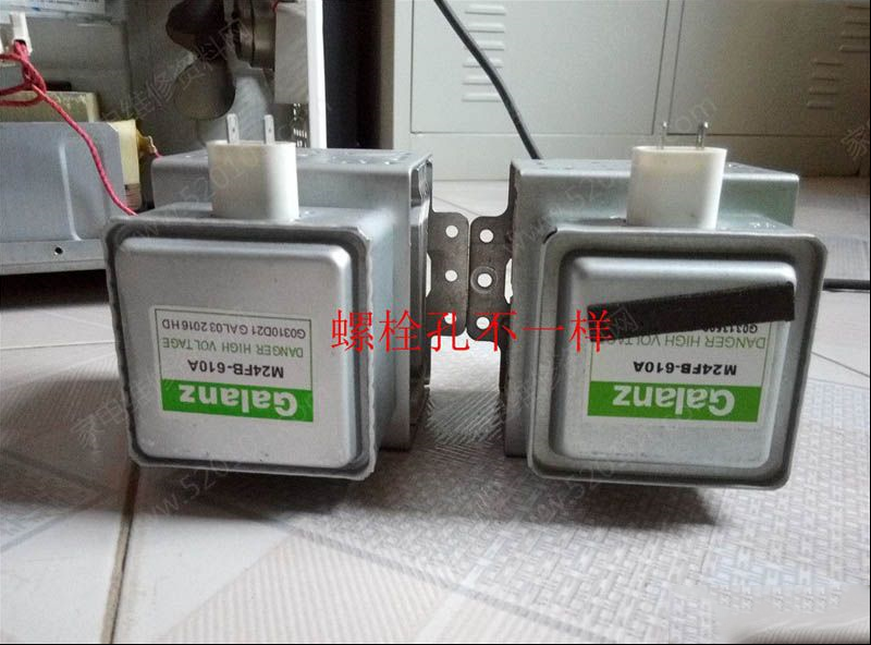 | 收到故障机一格兰仕G80F23CN2P-BM1(S0)微波炉,故障表现为能通电开机有工作声,不加热。开盖检查变压器、高压保险、高压二极管、高压电容,都正常。磁控管灯丝通,两脚对地不短路。用指针表AC1000V迅速碰一下高压电容,指针打表有高压输出。用手摸磁控管散热片有温度。此机无转盘,怀疑搅波电机故障,拆下通电旋转正常。怀疑磁控管有问题,今天从某宝购同型号磁控管,换上故障机修到这里,终于修好值得探讨。加热正常。所购磁控管不论外观、做工都不如原机的。 |