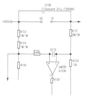 | 苏泊尔SY-50FH805Q型机,开机后各项功能均正常,能加热,但几分钟后面板显示“E5”。主板型号为CYSB50FHQ5-DL01,如图1所示。 根据故障表现为分析,故障应和温度有关。该机在加热时整机电流约为6.5A,但散热风扇不转动(注意:有些机型只有在加热时,风扇才转动)。拆下主板检测,发现风扇的限流电阻R54、R55(两只202电阻并联)已烧煳。 风扇控制三极管8050已短路,怀疑风扇内部有问题。撕开风扇表面贴纸,发现风扇正负极供电端之间有杂物。清除杂物,更换上述损坏元件后试机,故障机修到这里,终于修好值得探讨。。 例2:收到其他维修同行的一台CFXB40HZ5A型机,上电开机操作正常,选择功能后按“开始”键,面板显示E5。 故障原因分析:根据经验,此故障类似电磁炉的不检锅、不加热故障。修理这种故障时,须放入内锅加水试机检测。经检测,该机无检锅声。于是取出主板(型号:CFXB40HZ5A-DLO1),重点检查同步电路,如图2所示。 因电阻R103、R104、R101安装在IGBT管的散热片下面,根据经验其故障率较高,于是首先检查这三只电阻,发现R103 开路,更换R103后试机,故障机修到这里,终于修好值得探讨。。 提示:R103、R104、R101 这3只电阻的阻值误差要求极小,性能要求稳定。 |