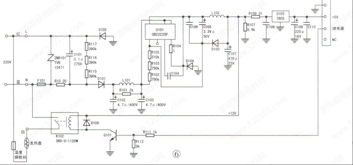 | 收到其他维修同行的一台苏泊尔CYSB50YC520Q -100(CY0740)电压力锅,常显示“50”字符且所有按键失效,无法加热,但是偶尔也能正常加热。机器偶尔能操作,正常开机后按“加热”键,工作几十分钟,一切正常,关机后也能正常开机。分析电路板受潮,工作时发热盘的热量使得线路板干燥而又能正常工作了。 第二天机器又出现老故障。怀疑线路板受厨房油烟环境影响导致绝缘降低严重,于是拆开机器用电子清洁剂清洗主板,又用热风枪对电路板吹了一遍,让高温给电路板驱潮。再开机,机器恢复正常。但是,一次在机器热机的情况下再开机,故障又再现了。线路板已作彻底清洗驱潮,而且故障出现在热机情况下,根据经验分析故障应该出在某个元件。 仔细观察故障时,机器除了显示“50"字符,“鸡鸭”模式的指示灯也在闪烁,根据这个特征,怀疑“鸡鸭”模式的按键开关S216有漏电情况,但测量开关绝缘电阻阻值正常。将S216拆开后发现里面的触点之间有污物,怀疑是厨房油烟环境所致。将其内部清洗干净后复原。再试机几天,故障不再出现。故障时显示的“50"字符,其含义是“鸡鸭”模式的厂家设定时间。因按键开关S216触点间有污物漏电,所以引起上述故障表现为。该电压力锅实测电路如图1、图2所示。 |