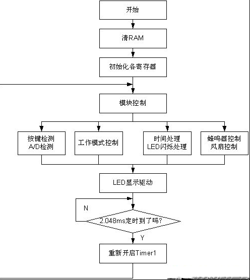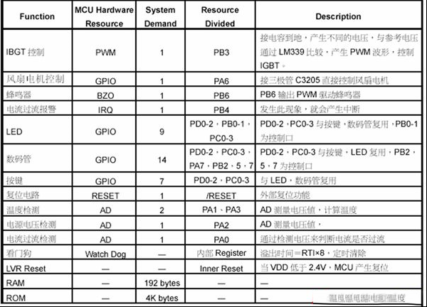 | 家电维修社欢迎你!【温度wd】检测,电流过流检测,超压欠压检测,振荡信号检测,风扇控制,数码管显示控制,LED 控制,蜂鸣器控制,系统启动控制。 功率板电路分析 交流电220V 经过前端滤波处理,通过整流桥,变成大约310v 左右的直流电,通过MCU控制IGBT 的导通和关闭,来控制加热线圈的工作状态。 开关dianyuan电源部分采用TI 公司最新推出的集成电路VIPer12A,来实现不同电压的输出,AC 接入后经过半波整流,接到VIPer12A 的电压输入脚,输出端通过稳压变压的方式来得到18V 和5V 直流电,为IC 和其他外围元件提供dianyuan电源。 电路中包含有电流检测部分,通过电流互感器将总回路的电流按比较缩小后,通过整流,变成直流,连接电阻到地,系统通过检查电阻端的电压来判断回路的电流大小。同时回路电流若超过一定值后,通过另一端的保护信号反馈到IGBT 的控制端,将控制信号拉低,使IGBT 停止工作,同时送到MCU,让系统停止工作,并产生报警信号。 控制板电路分析 此资料来源:www.jdwx.cn 转载请注明出处! 主控板中主要由MCU,数码管,发光二极管,按键,复位电路组成,数码管采用共阳型的,发光二极管驱动方法为动态扫描,按键与SEG 线复用,控制COM 口,回读SEG 【存储器数据】的I/O 来扫描按键。复位电路为低电压复位电路,当电压低于2.6V 时,系统产生复位。 系统软件设计主流程采用分时结构,在每个不同的时间片进行不同的工作,时间片可以对动态扫描的LED进行定时刷新和扫描,方便程序控制。 工作时采用时间轮循的方式,能有效的利用时间资源。过程中主要通过标志的方式将信息传递到其他模块。 中断程序 电流过流中断是整个系统唯一的中断,当产生中断时,系统马上停止控制信号,然后置电流过流标志,让系统在其他地方检测过流的状态是否持续3 秒,若是,则产生电流过流的报警信号,系统停止工作。 功率调节模块系统需要根据外部电压和电流的大小,来计算是否已经达到了设定的功率值,通过比较后的功率大小关系来调整PWM 值,以输出比较恒定的功率。 假设外部电压为V1, MCU 检测到的电压值V2,根据电路计算得: V2=5.1*V1/(330+5.1) 得到的A/D 值DATA 为: DATA=V2*256/5 外部电流和MCU 通过转换的电压的测试值的关系为: 外部电流值/转换后的电压=2.4 根据上述关系来换算功率值的大小: P=V*I=0.06*AD(V)*AD(I) 推出:AD(I)=100*P/(6*AD(V)) 确定AD(I)后,再通过调整PWM 值,以使AD(I)达到计算的值。 系统资源分配 12友情提示,文章来自互联网收集,欢迎你到论坛技术交流请点击这里www.jdwx.cn 12 / 2 页 |