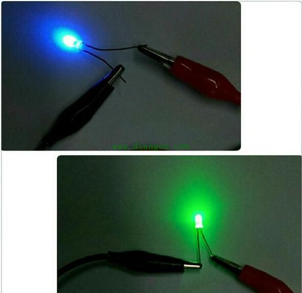 | 有关发光二极管的知识,介绍了测量发光二极管的方法,以及用一节旧的手机锂电池或9V叠层电池,来制作一个简单的发光二极管测量装置的教程,有需要的朋友参考下。发光二极管的测量方法 用万用表10k档进行测量,正向微亮,反向不通,则表示发光二极管是正常的。有的反向有一定阻值,则表示有漏电,在某些电控制电路会引发故障。 小功率的红色和绿色发光二极管,工作电压一般在1.6~2.4V,工作电流一般不大于20mA,用数字万用表的二极管档测量是否发光,可以判断出发光二极管的好坏。 白色和蓝色发光二极管,其工作电压在3~3.3V左右,而数字万用表二极管档的测试电压一般不大于3V,测试电流只有1mA左右,因此用来测量白色和蓝色发光二极管,则有可能无法使其点亮(即使点亮,亮度也很弱)。 在这种情况下,可以用一节旧的手机锂电池或9V叠层电池(用万用表换下来的旧电池)制作一个简单的发光二极管测量装置,见下图: 在制作时,在两根导线的一端分别焊上红黑两个鳄鱼夹,然后将红色鳄鱼夹的导线剪断串入一个数十至数百Ω的电阻(具体阻值视电池电压而定,上图中为9V电池,串入的电阻为330Ω),并套上热缩管,再将焊好红黑鳄鱼夹的两根导线的另一端分别与电池的正负极焊接在一起。 以上制成的发光二极管的测量装置,可以测量各种颜色的发光二极管的好坏。上图为测量蓝色和绿色发光二极管。 原文链接:https://www.diangon.com/thread-39826-1-1.html |