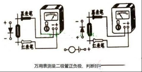 | 有关发光二极管的检测方法,以红外发光二极管为例,介绍了万用表检测发光二极管好坏的方法,红外发光二极管所发射的红外光人眼看不到,在检测时需要借助万用表,一起来看下具体的检测方法。万用表检测红外发光二极管的方法 红外发光二极管的正向压降一般为1.3~2.5V,可以使用指针式万用表R×10k档测量红外发光管的正、反向电阻。 在正常状态时,正向电阻值约为15~40kΩ(此值越小越好),反向电阻一般大于500kΩ。 共分为三种情况: 1、测得正、反向电阻值均接近零,则说明该红外发光二极管内部已击穿损坏。 2、测得正、反向电阻值均为无穷大,则说明该二极管已开路损坏。 3、测得的反向电阻值远远小于500kΩ,则说明该二极管已漏电损坏。 红外发光二极管所发射的红外光人眼看不到。除使用上述方法判断PN结好坏,建议准备一只光敏器件(如2CR、2DR型硅光电池)作接收器,用万用表测光电池两端电压的变化情况,来判断红外发光二极管加上适当正向电流后是否发射红外光。 目测法判断发光二极管的正、负电极(适用于红外发光二极管和透明树脂封装的普通发光二极管) 发光二极管有两个引脚,通常长引脚为正极,短引脚为负极。红外发光二极管和透明封装的普通发光二极管,其管壳内的电极清晰可见,内部电极较宽较大的一个为负极,而较窄且小的一个为正极。 红外发光二极管的检测: 1、判别红外发光二极管的引脚极性正、负电极。红外线发光二极管有两个引脚,通常长引脚为正极,短引脚为负极。因红外线发光二极管呈透明状,所以管壳内的电极清晰可见,内部电极较宽较大的一个为负极,而较窄且小的一个为正极。 2、将万用表置于R×1k挡,测量红外发光二极管的正、反向电阻,通常,正向电阻应在30k左右,反向电阻要在500k以上,这样的管子才可正常使用。要求反向电阻越大越好。838电子 红外接收二极管的判断: 1、识别管脚极性 注意:是接收二极管不是一体化接收头。 (1)从外观上识别。常见的红外线接收二极管外观颜色呈黑色。识别引脚时,面对受光视窗,从左至右,分别为正极和负极。 另外,在红外线接收二极管的管体顶端有一个小斜切平面,通常带有此斜切平面一端的引脚为负极,另一端为正极。 (2)将万用表置于R×1k挡,用来判别普通二极管正、负电极的方法进行检查,即交换红、黑表笔两次测量管子两引脚间的电阻值,正常时,所得阻值应为一大一小。以阻值较小的一次为准,红表笔所接的管脚为负极,黑表笔所接的管脚为正极。 2、检测性能好坏 用万用表电阻挡测量红外接收二极管正、反向电阻,根据正、反向电阻值的大小,即可初步判断红外接收二极管的好坏。 红外发光二极管的检测方法: 1、判别红外发光二极管的引脚极性正、负电极。红外线发光二极管有两个引脚,通常长引脚为正极,短引脚为负极。 红外线发光二极管呈透明状,所以管壳内的电极清晰可见,内部电极较宽较大的一个为负极,而较窄且小的一个为正极。 2、将万用表置于R×1k挡,测量红外发光二极管的正、反向电阻,通常,正向电阻应在30k左右,反向电阻要在500k以上。要求反向电阻越大越好。普通发光二极管及红外发光二极管的检测方法 有关发光二极管好坏的检测方法,之前介绍过判断二极管正负极的方法,今天继续探索发光二极管的应用知识,介绍下普通发光二极管的二种检测方法,供大家学习参考。万用表检测发光二极管不亮哪种故障 有关发光二极管的测量问题,之前介绍过用万用表判断发光二极管正负极的方法,这里也用到了万用表,不过是出现了万用表检测发光二极管不亮的问题,究竟是哪种故障引起的,一起来看下。发光二极管正负极的判断方法 有关发光二极管的知识,怎么来区分发光二极管的正极与负极,这里介绍了万用表判断发光二极管正负极的方法,一种简单有效的方法,有需要的朋友参考下。 |