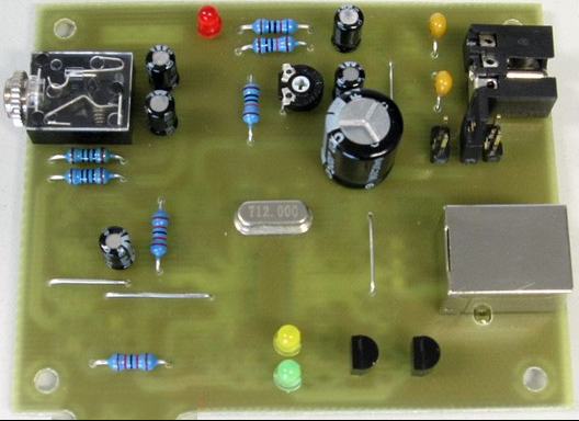 | 这个制作的核心是16位立体声数字至模拟转换器PCM2702的USB接口。 PCM2702只需要一些额外的部分工作。原理图并不复杂。声卡供电可以直接从USB端口取电或外部dianyuan电源。 PCM2702需要两个dianyuan电源为3.3V(从3V至3.6V)和5V(4.5V至5.5V)。我用固定为3.3V(IO2)和可调输出电压为5V LDO的TPS76701Q(IO3)输出电压LDO TPS76733Q。两个LDO由TI生产,我用这个,因为在我的抽屉里。任何类似的稳压器都可以使用。输出电压的IO3应设置为一点比输入电压低,使LDO的稳定性好,在我的情况下输出电压设置为4.8V之间。输出电压可调。在低电压的情况下,IO3可以通过跳线短W3号。电路原理图 腐刻完的覆铜板 制成的USB声卡电路图电路板 |