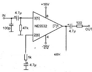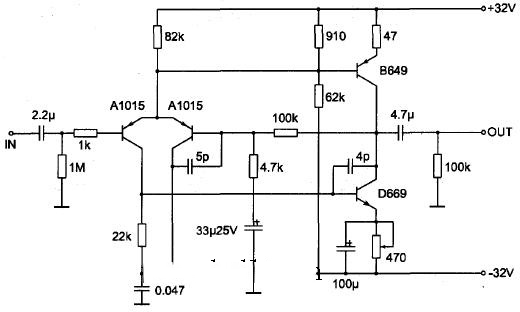 | 2SA2151和2SC6100是日本“三垦”公司生产的新型音频放大器专用大功率对管。笔者有幸得到厂家免费赠送的2SA2151和2SC6100两对。根据厂家提供的技术参数和自已的一些制作功放的经验用数月的时间,打造了一款非常适合家用的功放,现将电路提供如下供大家参考。 电路选择方案 笔者的听音室面积为21平方米,音箱是自制仿Ls3/5a两分频监听音箱。由于有机会接触各种音响器材,经过比较决定制作一款多种音色可比较的功放。电压放大部份分别选用运算放大器形式、晶体管分立件形式、电子管式,采用开关进行切换以便比较。末级电流放大级采用0dB纯甲类无负反馈形式,电路见图1。 选用这种电路形式主要基于以下几方面考虑: 1.采用纯甲类工作形式能基本消除交越失真和开关失真,这两种失真是普通乙类功放无法克服的。 2.采用无大环路负反馈形式可以消除由环路负反馈引起的瞬态互调失真和交界面互调失真。这两种失真均为动态指标,定量测量这两种失真方法都很麻烦,所以整机商品均没有这两种失真的技术指标。瞬态互调失真对重放音质是否自然影响很大,一般平时都不太注意这个指标。交界面互调失真是由扬声器工作时音圈产生的反电动势经过环路负反馈作用到放大器输入级产生的新的动态失真。交界面互调失真严重时将使重放的声音混浊不清,所有有大环路负反馈的功放都有这个问题,只是程度不同而已。 3.0dB纯甲类无负反馈功放是没有电压增益的,对电压放大级的性能是一种考验。由于没有进入负反馈环路,谐波失真、阻尼因素等其它指标就要靠电路自身和元件质量来保证了。 元件安装与调试 一般的电流放大级均由两级组成,一级中功率管将电流放大,一级为大功率管进行大电流输出。图1电路为了适应不同的电压放大级的输出电流,在电流放大级采用了达林顿结构使很小的电流都能满足输出额定功率的需要。 图1电路纯甲类输出功率为25W(8Ω负载),静态电流1.25A,这样每只功率管的静态管耗为31.25W,4只功率管总的静态功耗为125w。 本电路制作时可用印刷电路板装配,也可采用搭焊的形式直接在散热器上装配。装配时散热器的面积应满足要求,一般选用标称200W成品机类似的散热器即可。用印刷电路板装配时恒压偏置调整管8050应紧贴在散热器上以进行【温度wd】补偿,每臂的两只中功率管应背对背紧贴以保证热均衡,如搭焊则所有的晶体管均安在散热器上,供电dianyuan电源直接连到大功率管C极,可调电阻应选用多圈精密可调电阻,以保证调整的准确性和安全性。 输入电容对音色的影响较大,可根据自已的喜好来选择品牌。所有的晶体管均应配对使用。装配好后即可通电调试,先调整10K可调电阻使输出端直流电压低于10mV以下。如直流电压不能调整到10mV以下,说明晶体管的配对性不好,应更换重调,调好后再进行静态电流的调整。调节5K可调电阻使大功率管射极电阻(0.22Ω/5W)两端的直流电压为275mV,此时静态电流即为1.25A,让放大器在这种状态下静置1小时再测中点直流电压和静态电流值,如不符则重调。调好后该功放就算制作完成了,选择不同的电压放大级即可工作了。 电压放大级选择与装配 图2为晶体管电压放大级,该电路选用著名的“马兰士”PM功放的前级放大器电路。当末级功放要达到25W的额定输出时,电压放大级应提供15V以上的不失真电压,原电路是做为前级放大器使用的,电压放大倍数只有8.5倍,不能满足需要,本电路中将电压放大倍数改为22倍以满足末级的需要。照图装好后调整470Ω可调电阻使D669和B649的静态电流为20 mA,使其工作在甲类状态。 图3为采用双运放组成的电压放大级,选用这种电路主要是想领略不同档次的运放音色和音质,由于运放最大输出电压只有13V,所以用该电路来推动末级时最大功率只有20W,装配时运放位置采用镀金插座以便于更换不同的运放来试音。 图4为电子管电压放大级,电路参考了世界名机“马蒂斯”电路,为适应末级的需要在供电电压和放大倍数上做了一些改动。本电路的音色相当甜美,与纯甲类末级组合堪称佳配。电路装配容易,无需调试一装即响。 以上三种电压放大级在装配时应尽量选用优质元件,尤其是各级耦合电容应选择发烧级的品牌电容。 本机末级工作电压是根据大功率管工作在1.25A的状态下进行综合考虑的,不要为了增大输出功率而轻易提高末级功率管工作电压,如果音箱阻抗为4Ω时,纯甲类功率将降为12.5W,而甲乙类功率将增至60W左右,由于末级功放管没有进入环路负反馈网络,当工作点进入乙类状态后失真将明显加大,所以应重新调整末级功率管的静态电流和工作电压,在4Ω负载时,要有25W纯甲类功率输出静态电流应调整为1.77A,工作电压应为±17V;此时单只功率管静态功耗为30W左右。该功率在家用放音状态下完全能够满足需要,推动10英寸三分频落地式音箱也绰绰有余,这就是纯甲类与乙类功放的差别所在,有兴趣的读者可以试试。 |