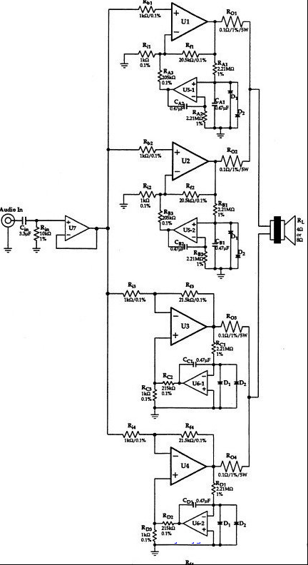 | 美国国家半导体的LM4780芯片是一款立体声音频放大器,可以为每一声道连续提供平均高达60W的输出功率。 LM4780有“蜈蚣脚”IC之称!号称2*LM3886,我曾经记得有款进口的乐林功放采用数片3886并联输出,作为并联方面,4780应该比3886具有优势。 有两块LM4780时,可以考虑做并联功放: 可以试试将同一块板子(不是IC)输出、输入并联。。。做成并联功放的——这块PCB设计时就考虑到方便这样干。 不过。。。如果你并联的话,板上那四只决定放大倍数的电阻(即与-输入端相连的四只电阻)最好在事前用数字表配一配,以让两块放大器的放大倍数严格一致。另外,将+输入端的15K增大,比如增大至47K,以免输入阻抗过低。 装机时,可以试试在输出的喇叭接线柱跨接2。7欧姆串0。1U电容的茹贝尔网络,增强功放的稳定性,以期获得音质的改善。 再来张多组并联的图 试验中还发现: 1.LM4780的低音明显比LM3875好,扎实有力了许多。比较之下,特别是比并联的LM4780比较,LM3875的低音虚和浮的。 2.比LM3875的高音去得更尽,换言之,LM3875重放不出来的细节(可能是被我校音校掉了,呵呵)和超高频,他能表现出来。 3.LM4780不并联的声音好(现在反过来了。。。呵呵),细节多,高音比并联时少了毛躁感,音场退后。。。我的dianyuan电源是1000U小电容。但低音的量不少,但规模感和大气感比不上并联的。 |