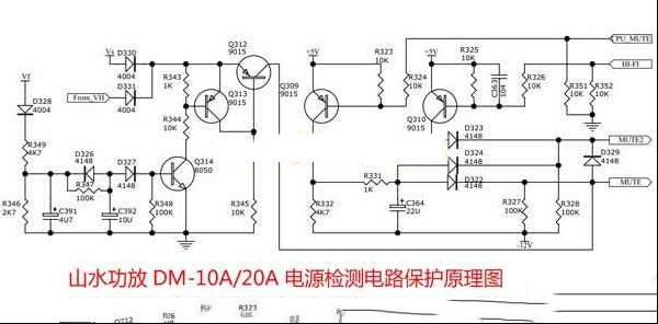 | 山水功放DM-10A旗舰功放不开机维修一例 相比之下那还要数美加集团生产的这批中文机,包括山水、威发、爱浪、丽尊等,虽然我们行内人都知道,他旗下的几个品牌大多是假洋鬼子,往往被销售商当成洋货高价销售,但是这些机器的设计还是值得肯定的。首先日本机器的英文操作菜单中国人很难搞得懂,有些用户用了很多年都不知道怎么设置,因为显示的都是专业术语的缩写。而中文功放一是菜单用户看得懂,二是设置简单,包括信号识别,环绕调节都几乎是一键完成。不足的是信号处理电路跟不时代。 山水DM-10A ,DM-20A这两款功放从外观上持十分霸气,全铝合金机身,配上厚厚的亚克力面板,可以说比安桥TX-DS989、天龙AVR-4306这些旗舰级功放看起来更上档次,开机后功放会自动识别信号源, 显示音频画面有多做样式可选择,操作面板上只有两个旋钮即可完成全部功能设置,这一点特别值得日本品牌学习,不像雅马哈那些功放动则几十个按键,中国用户很难搞清楚,甚至不敢随便按,设置调乱了就调不回来。打开机壳后看到一张主板,不过还是使用了三菱M系列的单片机芯片,布局明显有异于日本功放,很像是HIFI产品那种对称摆放,后级功率很足,推动一般的三分频落地箱完全没有问题。总的来讲,如果不考虑HDMI解码,还两款机器还是很值得购买的,售价在八千到九千上下。 功放维修过程:打开背后的电源开关后显示屏大多会直接全部高亮,有时局部高亮,过两三秒就能明显的看到灯丝发红,感觉像是VFD显示屏内部短路一样,但是多年的维修过程中从来没有遇到过这样的故障,只能是怀疑CPU电路工作异常所致。测量待机电源和整流电压,正负12伏,两个正5伏,正3.3伏,正2.5伏全部都正常, CPU晶体振荡正常,复位信号5伏,都没有异常。后来经过电压测量,和驱动电路的全部检查,都没有发现问题,只好从收到其他维修同行的一台新机器上拆来显示屏试一下,果然不出所料是显示屏坏了,更换后开机正常了,但是没有声音输出。测量JB19的各脚电压,MUTE2为静音脚本应该是负压,测得正18伏电压,说明是静音了,根据电路图查找得知,MUTE2的控制来自于电压检测电路,具体工作流程如下: VF取样点是从待机变压器输出的整流线路上取一个交流电压,经D328整流和R349限流后,得到约7伏的直流电压,送给Q314,Q313,Q312共同组成的检查电路,从Q312的集电极输出负12伏电压。然而实际测量时发现该电压却为正18伏,所以后一部分电压会静音。分析电路图后知道, 要么是这几只国产三极管坏了,要么是VF取样信号没有正常,后仔细一一检查后发现R349开路,这颗4.7K的小电阻隐蔽在插头下面而且打了胶,非常不容易发现。 另外,山水10和20的这两款机器区别仅仅在于电源开机键位置不同,功能结构上几乎没有区别。外地客户如果遇到需要维修可以寄往渝成音响维修部,我们将非常专业的为您解决任何故障。 12 / 2 页 |