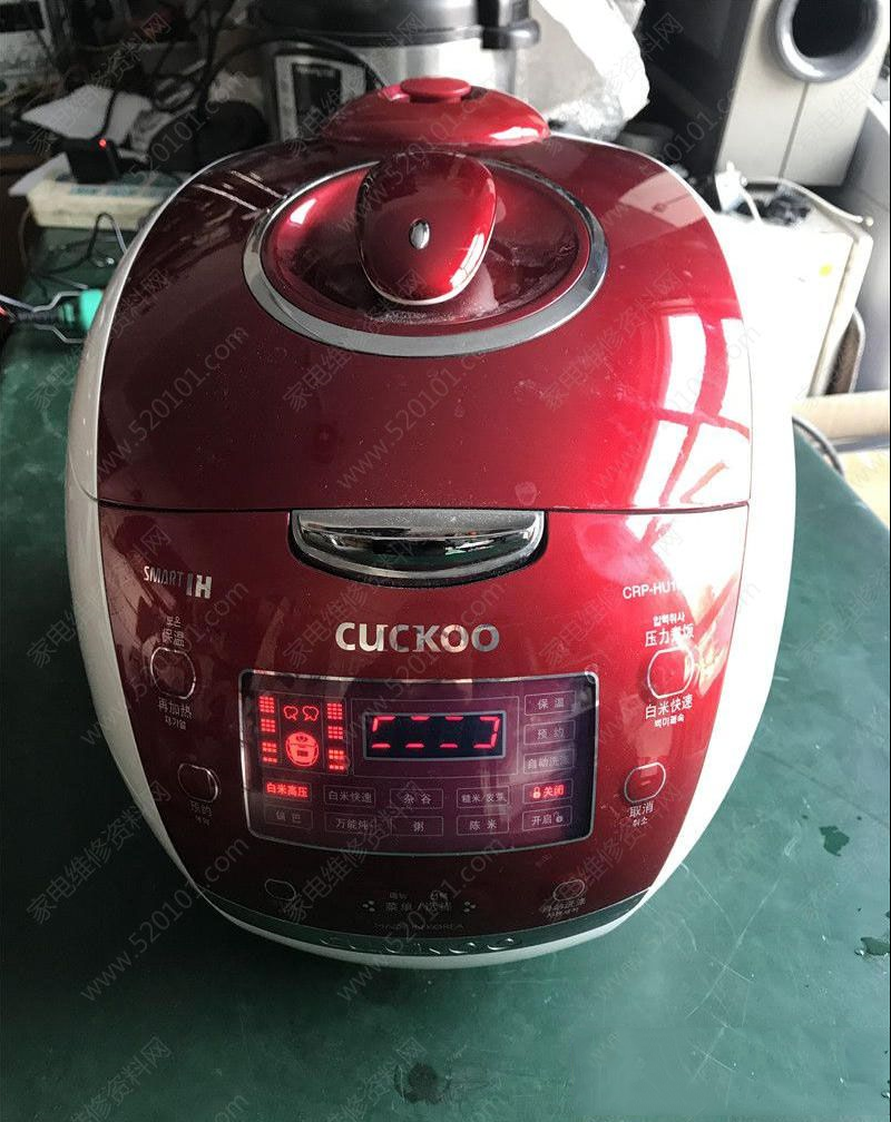 | 接修一台韩国CUCKOO福库电饭煲,故障表现为通电面板显示IH:F故障,拆机测R213 1Ω/2W电阻开路,顺路取下C402 102/1KV发现漏电,更换两只元件装机测试故障排除。 |