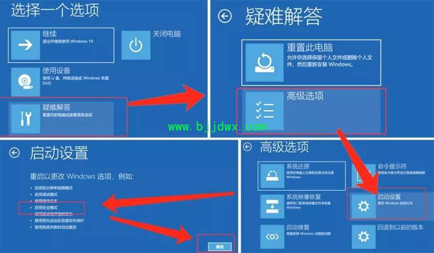 但驱动哥经过检查发现,这名用户的电脑除了蓝屏外一串应为的蓝屏提示外,还包含无线重启的现象,看起来这次很复杂。 不过对于这样的问题,驱动哥还是有方法的,下面就来看看驱动哥教大家如何解决无限蓝屏重启的办法。 本站家电维修网https://www.jdwx.cn/bjjdwx/是以家电维修技术交流为中心的技术论坛、进入Win10安全模式 1 强制关机并开机三次,会看到一个让你进入疑难解答的选项,这也是蓝屏的唯一进入安全模式的方法! 2. 选择选项4、5进入安全模式(带网络的安全模式) 第二步、禁用显卡或卸载显卡驱