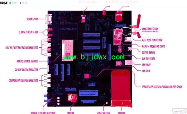| 2007年1月9日,乔布斯发布了第一代iPhone,12年过去,人们第一次见到了首代iPhone的EVT(工程验证机)。 这台EVT验证机是如此的原始,以致于组件分布在一块大主板上,即典型的服务于开发人员,以便对各种功能模块进行测试。按照开发板收藏人theredm68的说法,出于保密考虑,多数工程人员的开发板根本看不到屏幕,还需要外接显示器。幸运的是,此次展示的这台有液晶屏组件,而且可以点亮。 此外,开发板上还有串行接口(测试iPod)、3.5mm输入输出、4GB三星闪存、30针接口、电源/音量键、摄像头、Home键、单核ARM11处理器堆叠三星 K4X1G153PC 内存(ARM1176JZF) 、网口、通讯基带模块(Intel、英飞凌、美满、Skyworks、CSR芯片等)、SIM卡槽、测试通话的RJ11接口等。 收藏人介绍,原型机代号M68,项目名称为Purple 2。 可能你注意到了主板采用红色印刷,据说这是苹果对原型机唯一的偏好,量产机会用绿色或者蓝色。 |