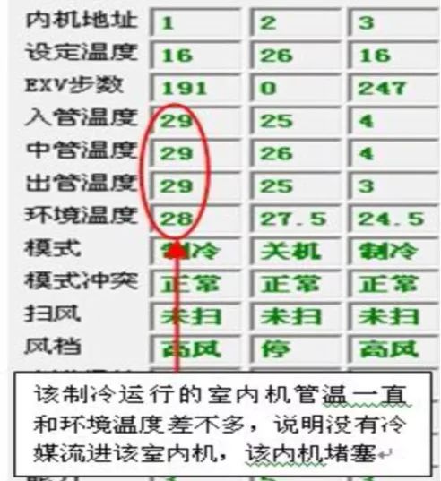 第2步:如何排查造成节流元器件故障或系统堵塞的原因? 内机断电后重新上电,用手摸阀体,并用耳朵听阀体的归零动作,确定阀体是否有明显的“哒哒”关死的归零动作,并且手能否感觉到明显的阀体归零的震动,如果阀体有明显的归零动作则说明堵塞处不在阀体组件本身,就需要检查其余焊接的地点,尤其是分歧管,将管路烧开后用氮气吹,看哪里吹不通就是哪里堵了。 如果阀体没有明显归零动作,则需要进行以下排查: 查看电子膨胀阀线圈是否插到相应内机的主板上
