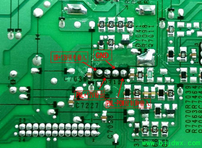 夏普SHAP LCD-60NX265A液晶彩电开机一段时间后背光亮,黑屏 现象描述: 背光亮,屏幕黑屏无字符。 原因分析: 初步判断可能是液晶屏,T-CON板,主板或者电源板。 检修过程:: 因机器要一段时间后才会出现故障,为了快速解决用户维修判断故障部位,师傅已经上门代换主板和T-CON板。 通电试机同时使用电吹风加热使故障快速再现,观察发现瞬间马上出现黑屏且无横带、竖带、一边亮暗,偏色之类的与液晶屏故障相关联的现象,初步排除液晶屏。怀疑逻辑板供电降低,测量PNL+12V端口果然只有7.8V,该电压是由IC7012稳压芯片提供,正常电压输出+12V.经测量IC7012芯片1脚+13V、2脚7.8V、3脚地、4脚控制脚3.2V。 从测量数据分析只有输出电压偏低,判断此芯片不良。如下图:管理编号:2015-11-02 解决方法:更换IC701,机器修复。 |