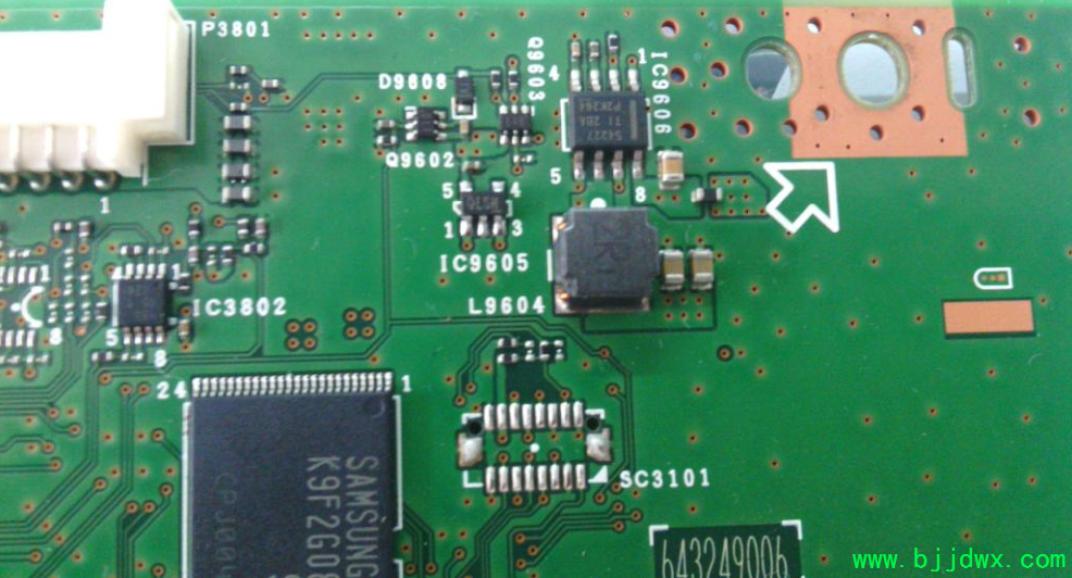 夏普LCD-52LX640A彩电有时能开机有时不能开机。 原因分析:主板DC—DC电路故障或者BGA有虚焊。 检修过程:出故障时手触摸主板DC—DC电路的IC及BGA都没有温度(正常工作是有点温度的),围绕BGA的工作条件来检修。出故障时首先测量电源板5伏供电到主板正常,测量主板DC-DC电路各组电压时发现IC9605输出电压在1.6伏至2.4伏跳变,正常应该是3.3伏,测量其输出端的对地的阻值正常,检查IC9605外围元件也正常。由此判断IC9605有问题。解决方法:更换IC9605后通电试机正常。 |