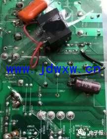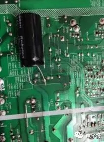 电视机长期使用后电解电容易于老化,容量会减少,在印板上又不便于用万用表测量其好坏,特别是藏在散热板下面的300V整流电容,也很难取下来。便在印板后面并联一个参数相近的电容,如图1所示。同时也顺带在背光的60V电源和主板的5V、12V电源上的滤波电解电容处,都各自并联了一个参数相近的电容。使其各输出电压的滤波电容的容量增加,提高输出电压的稳定性。试机还是同样的故障现象。 小继电器频繁的跳电,是否会是内部触头坏了呢?买来一个12V的小继电器,费了好大的劲,才从散热板里面卸掉。而新的其焊接脚又对不上,便添加引线焊接在印板的后面,如图2所示。另外,图2中的电解电容是并接在小继电器两端的,防止小继电器吸合中的抖动现象,不过稍有延迟现象。通电试机故障依旧。