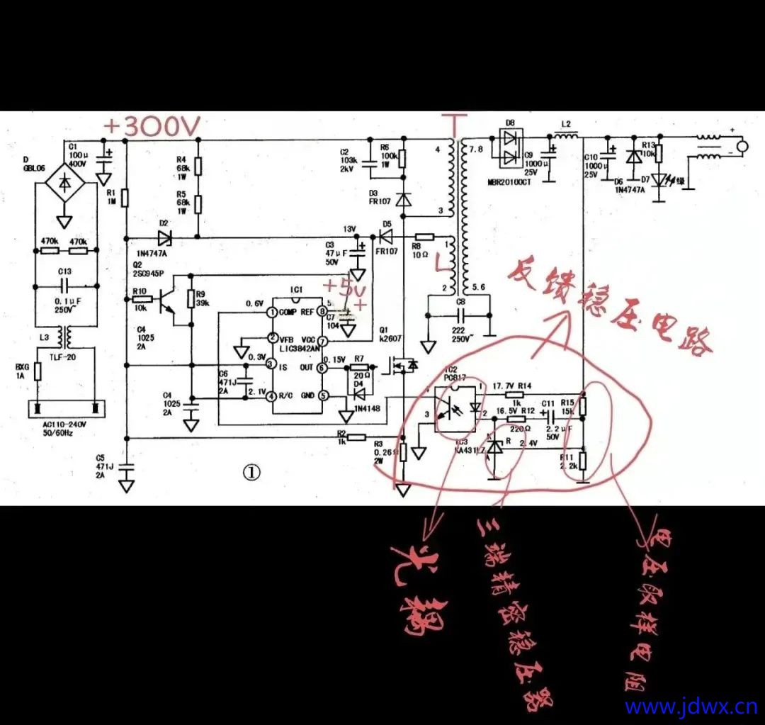 该电路由光耦lc2及三端精密稳压器lC3为核心器件构成。