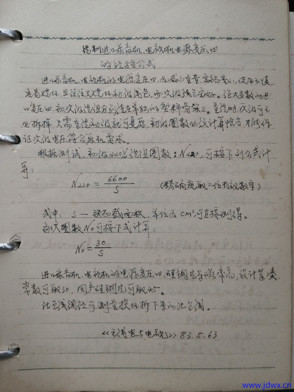 下面提供一个变压器绕制经验计算方法供你们参考。这是上世纪60年代中期以后,我在机电、家电、电子维修中常用的变压器重绕计算方法。